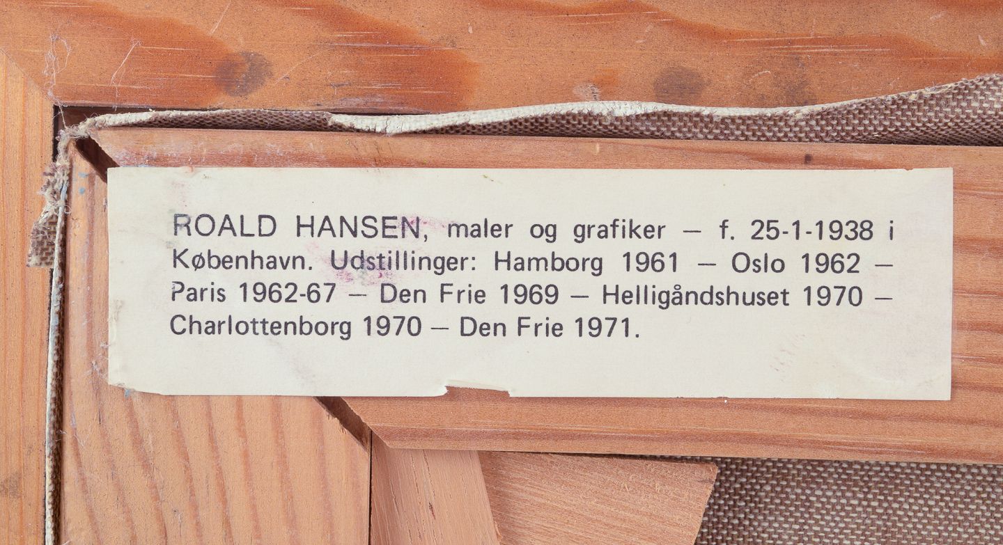 Roald Hansen (født 1938) er en dansk kunstmaler, kendt for sine stemningsfulde landskaber og naturalistiske motiver. Med en forkærlighed for det nordiske lys og naturens detaljer arbejder han primært i olie og akryl. Hans værker udmærker sig ved en rolig farvepalet og en sikker fornemmelse for lys og komposition. Roald Hansen har udstillet i både Danmark og udlandet, og hans malerier findes i flere private og offentlige samlinger.