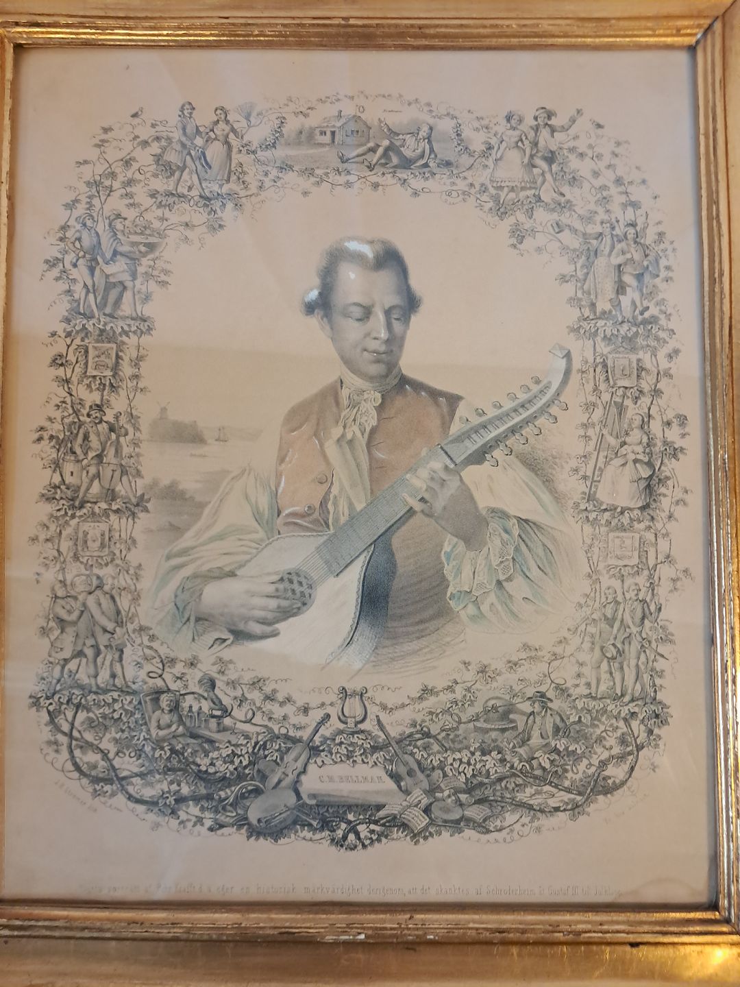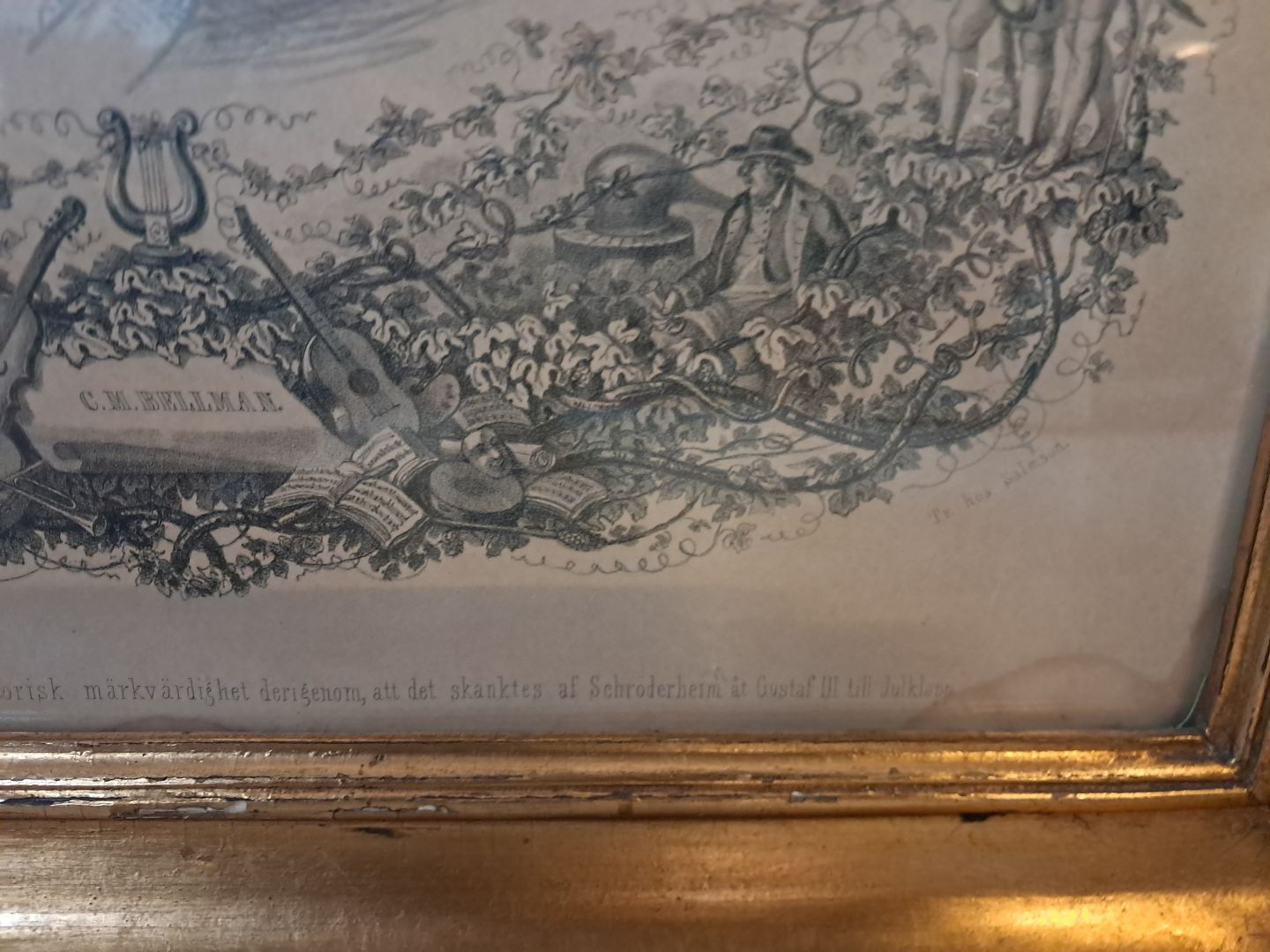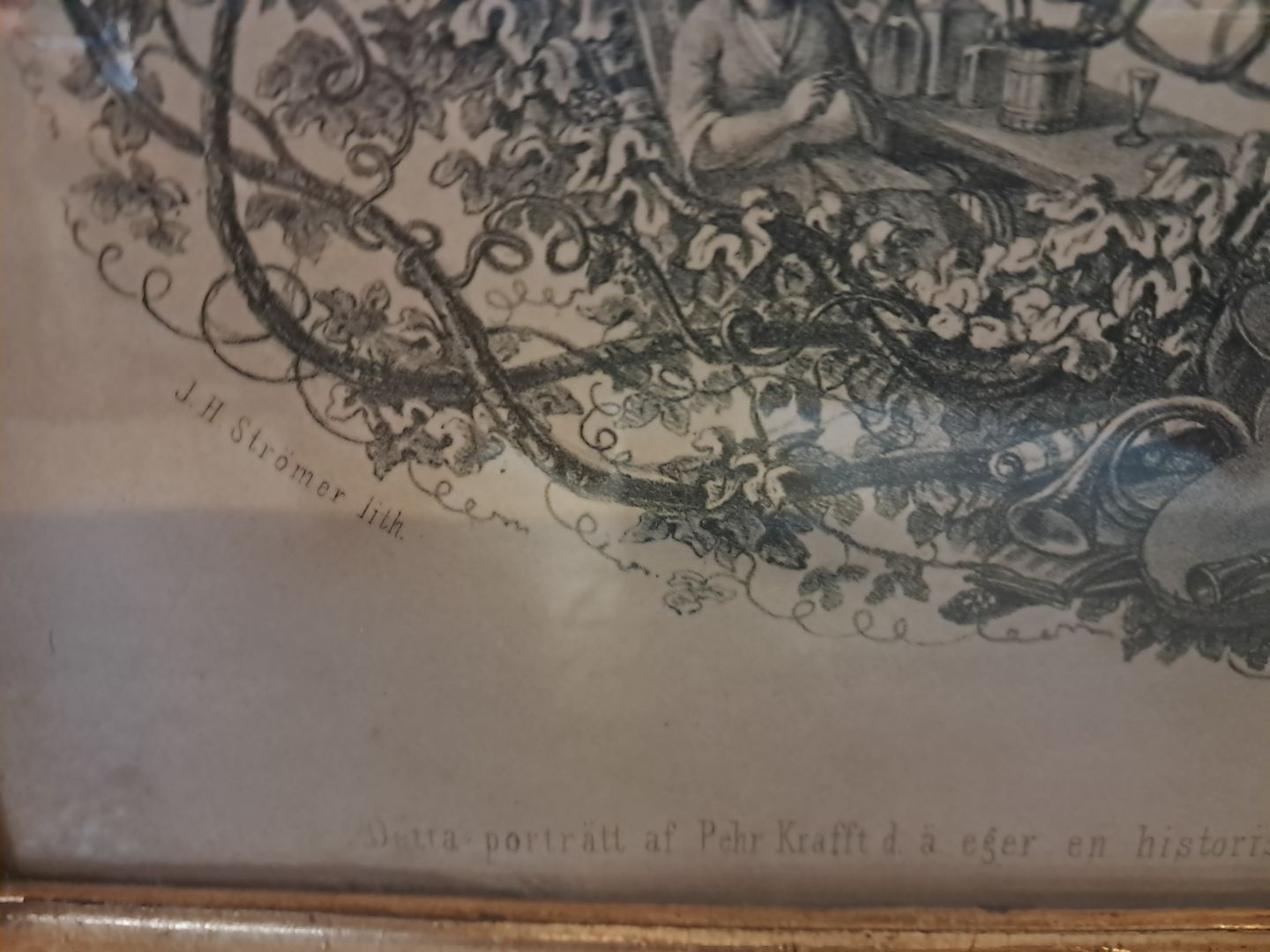 Gammelt tryk i guldmalet ramme med glas, fra ca. 1890erne.