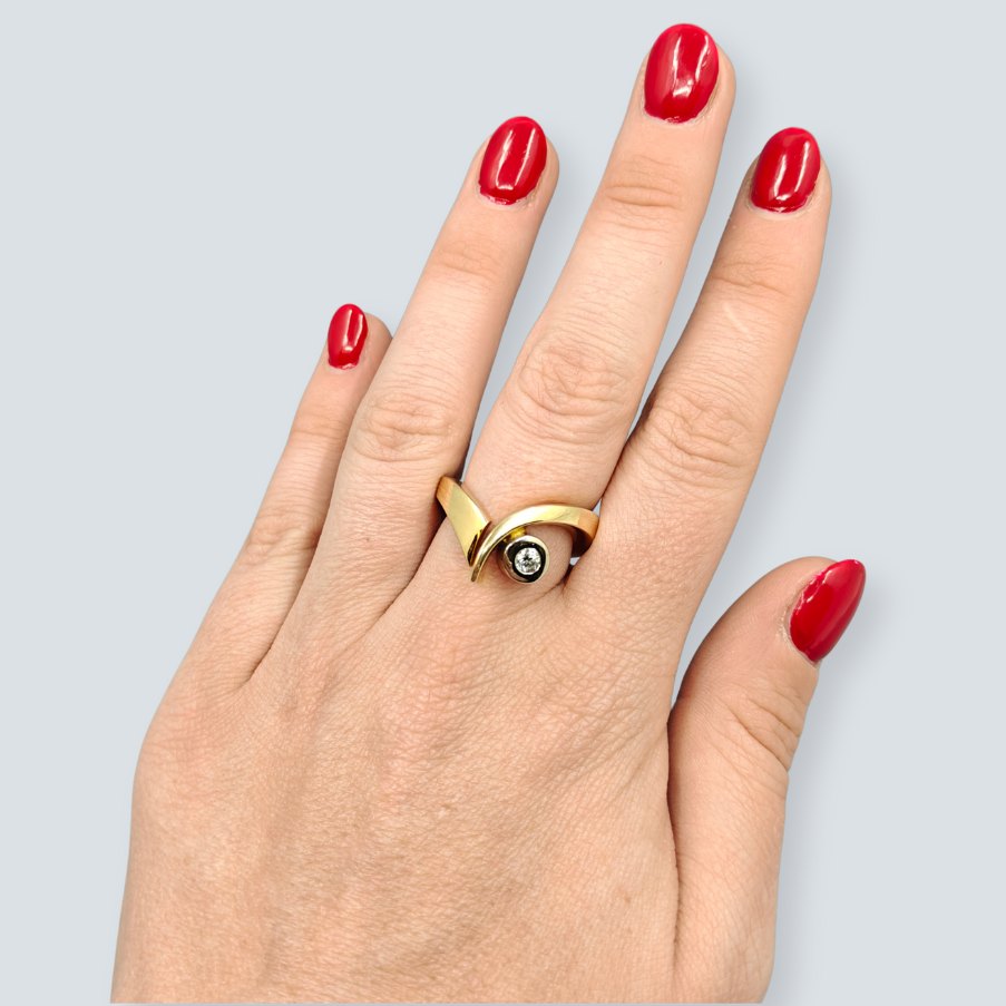 Birgitte Munch; Kraftig diamantring i 14 kt. guld og hvidguld