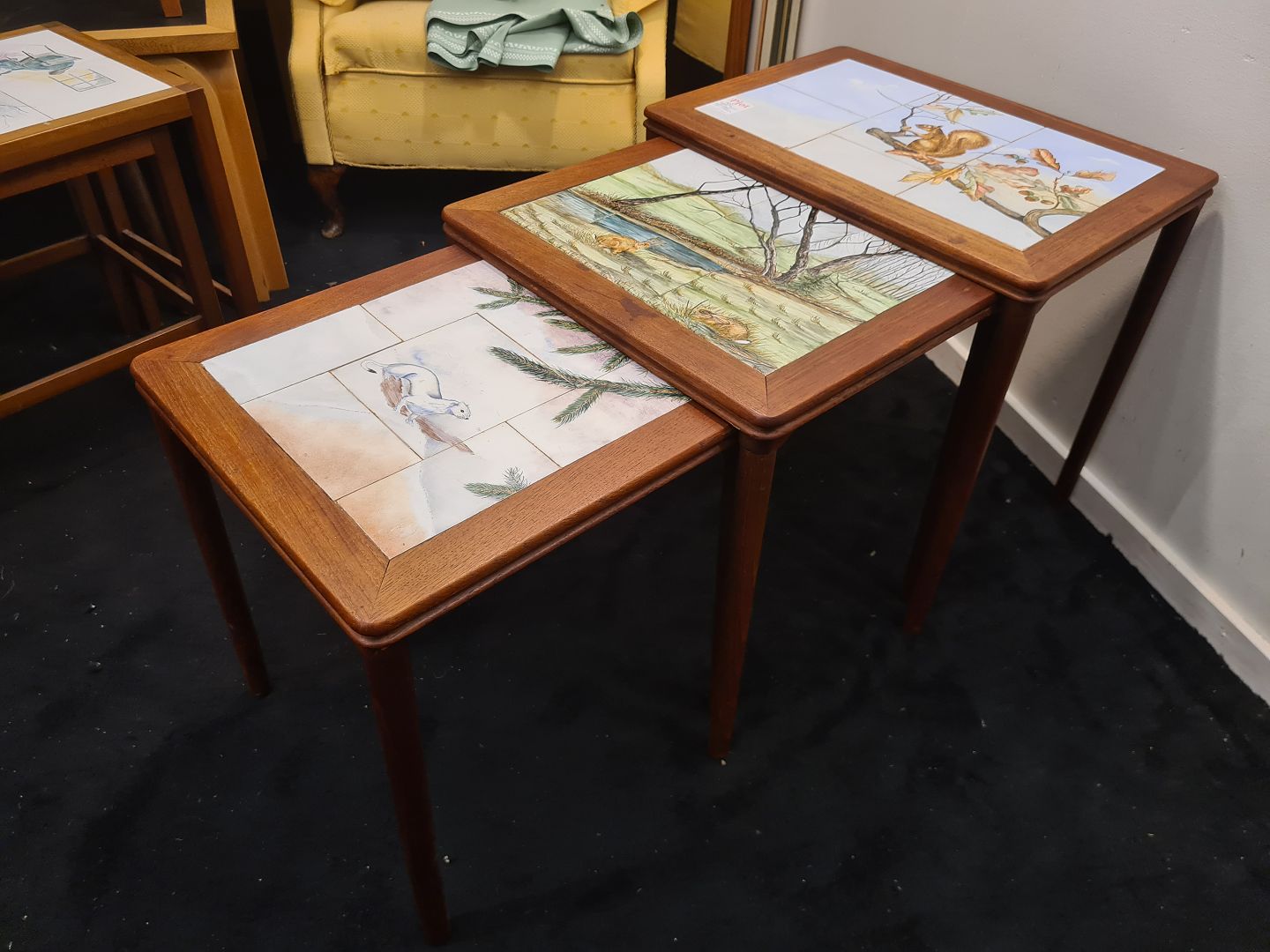 Dansk møbelproducent indskudsborde i teak med kakler.