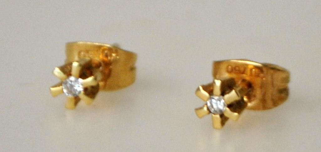 Et par 18 karat rødgulds øresticker, 20. årh med brillanter. Stemplet