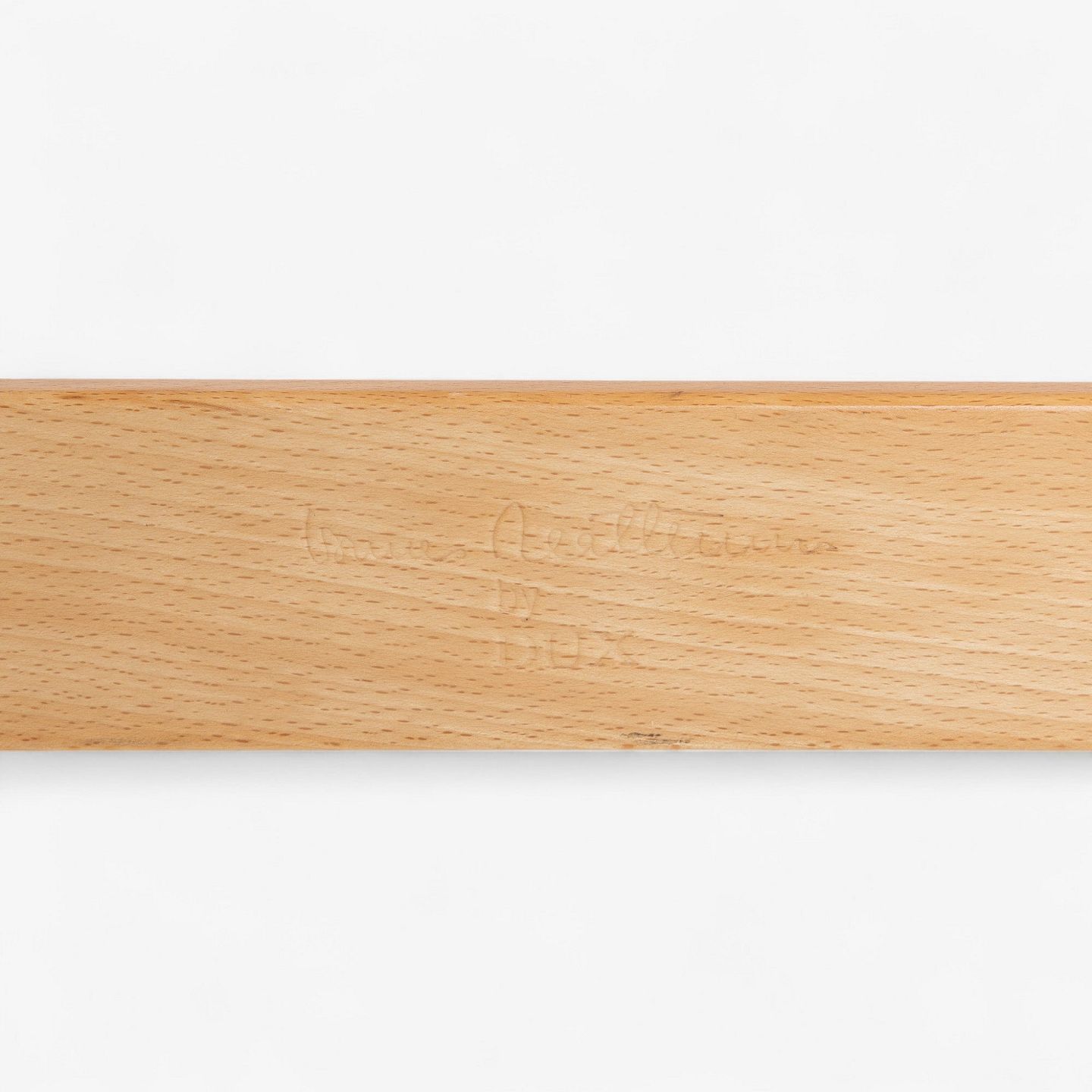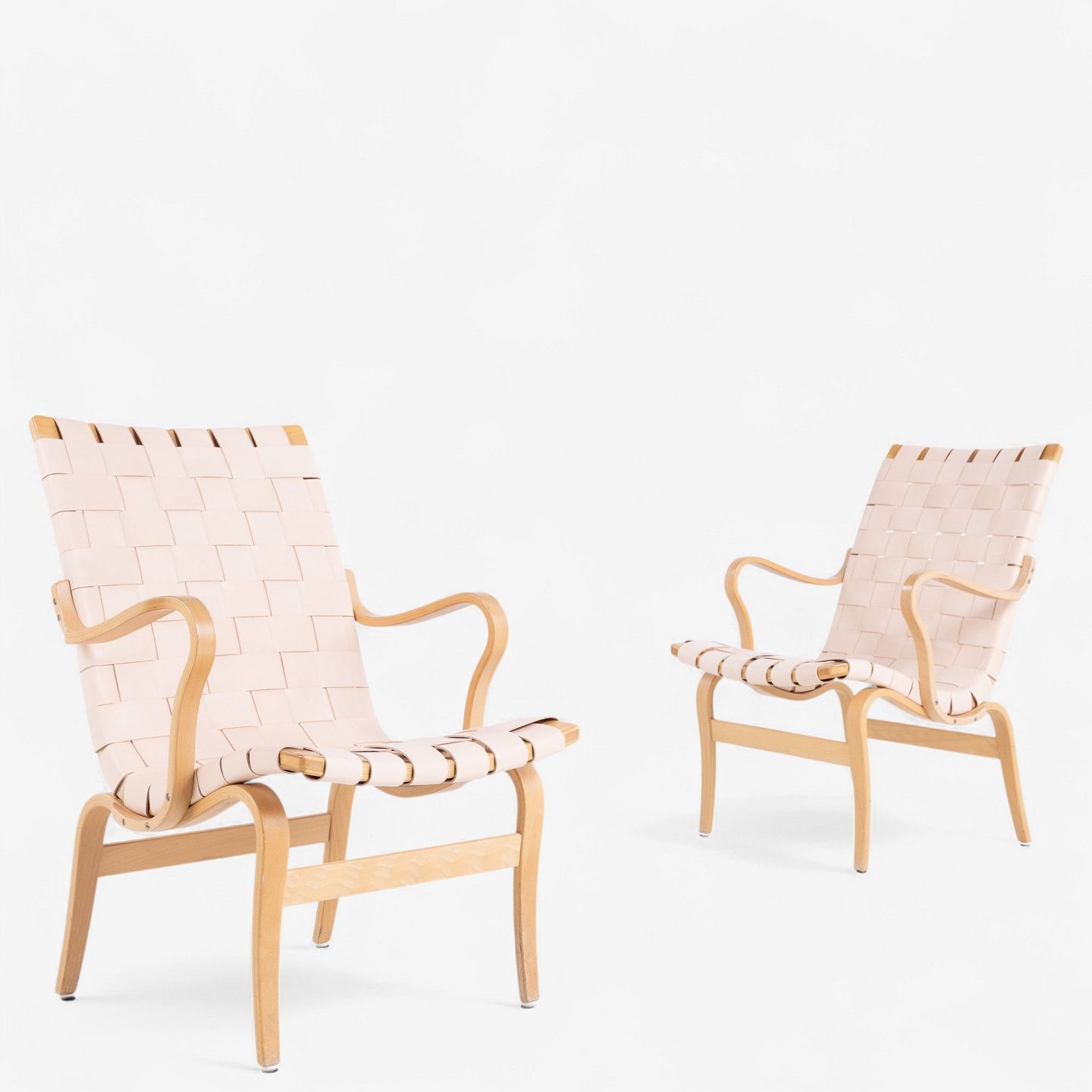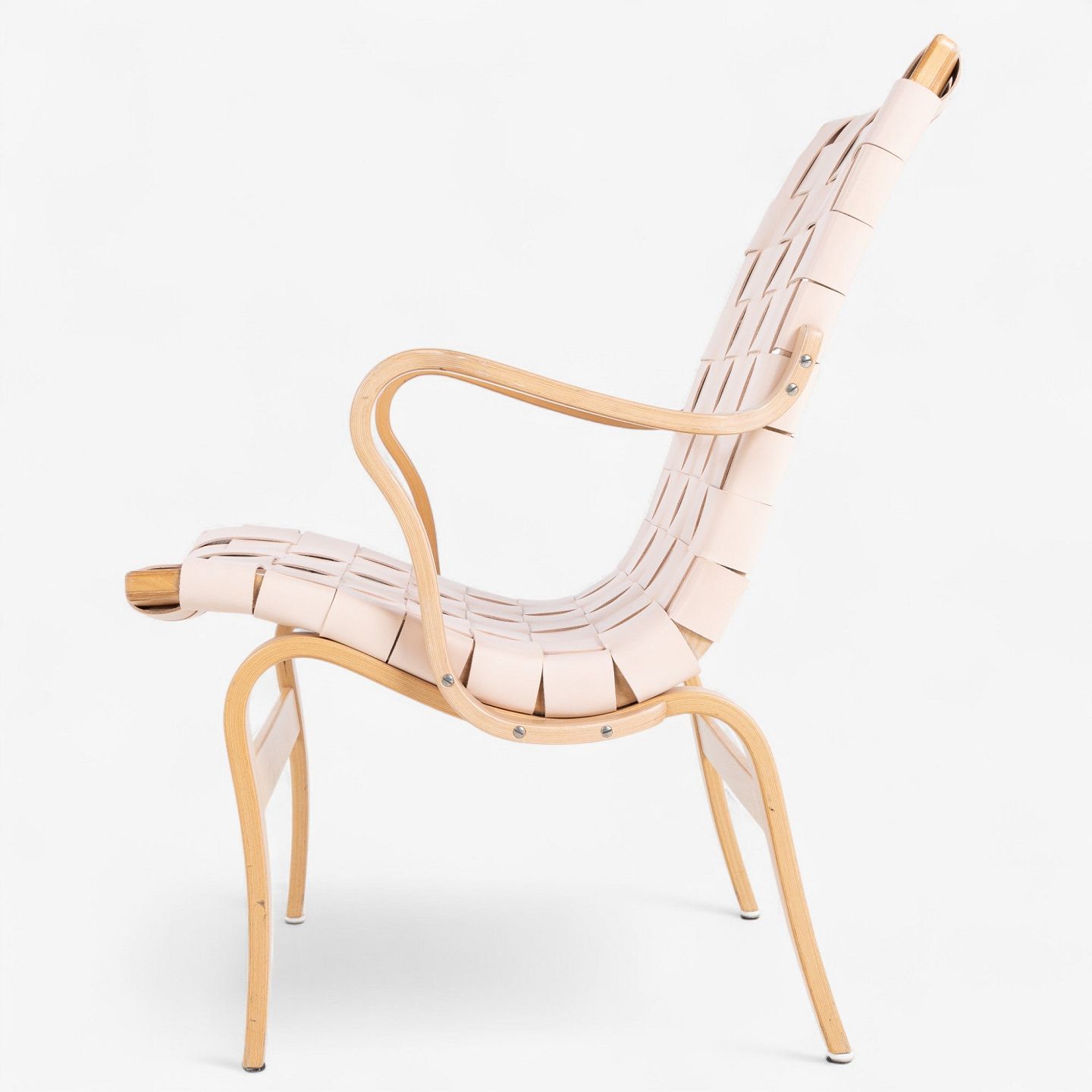 'Eva' armchair in patinated beech with braided natural grain leather. Manufacturer's mark.