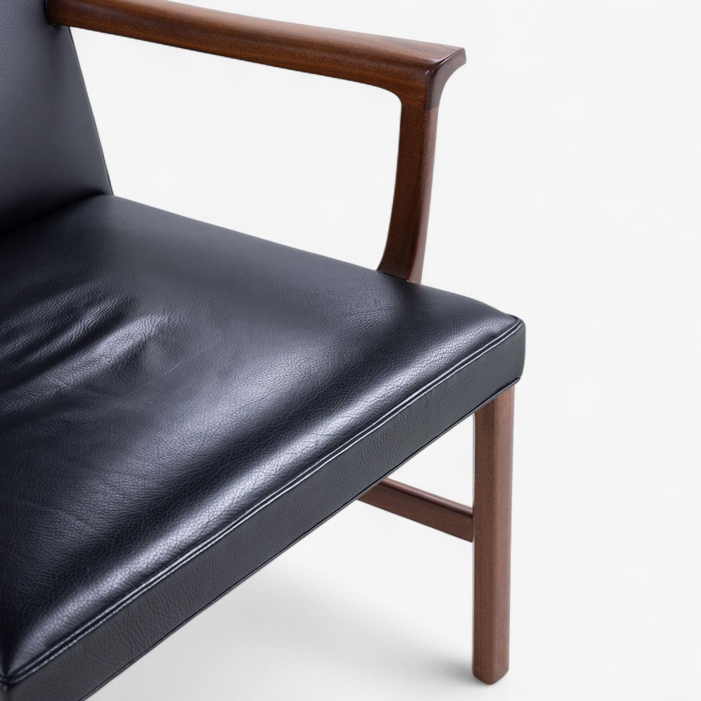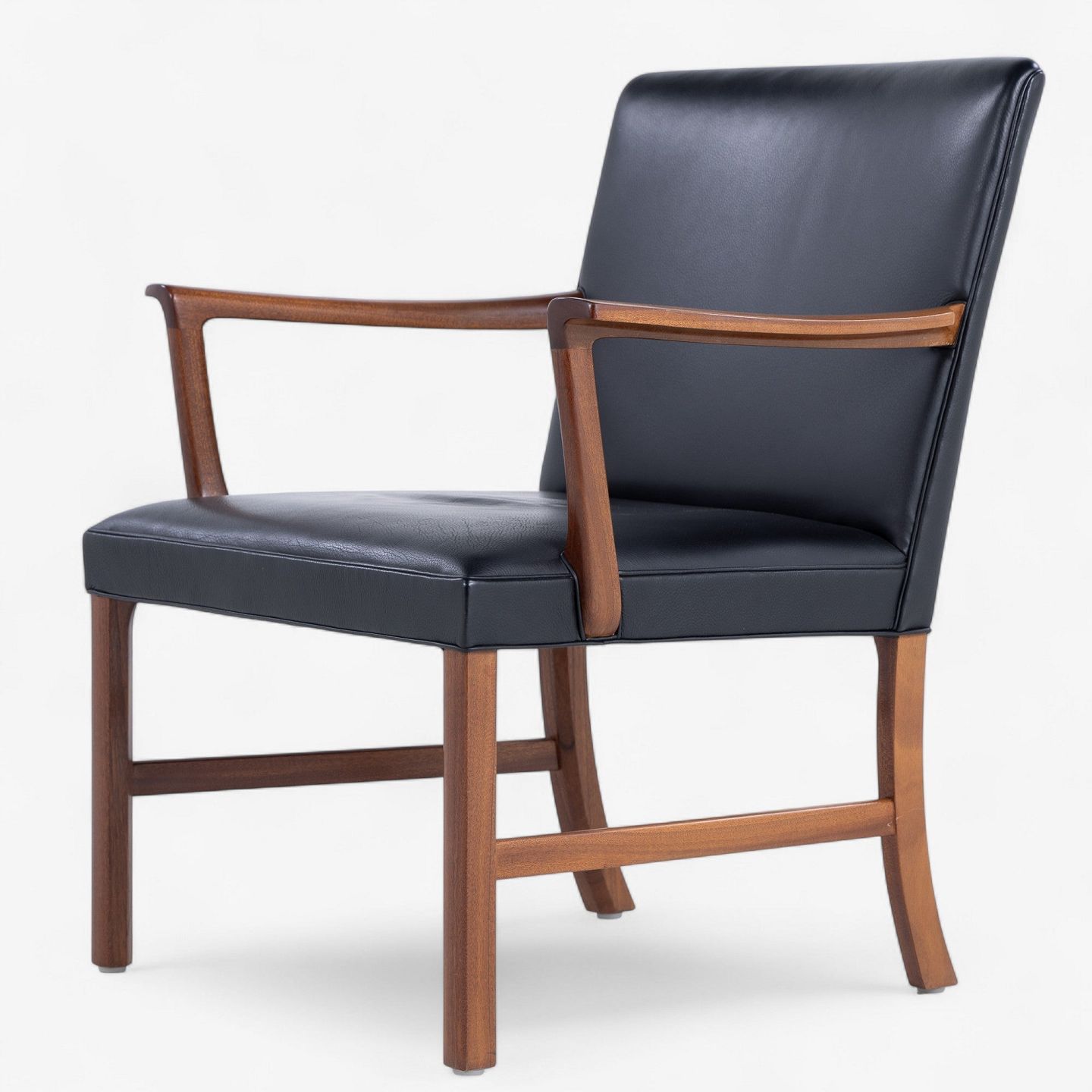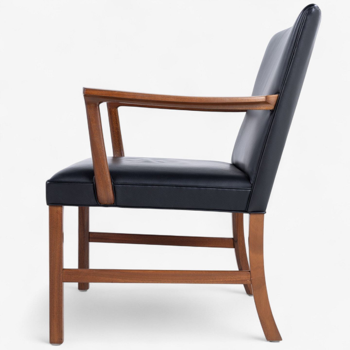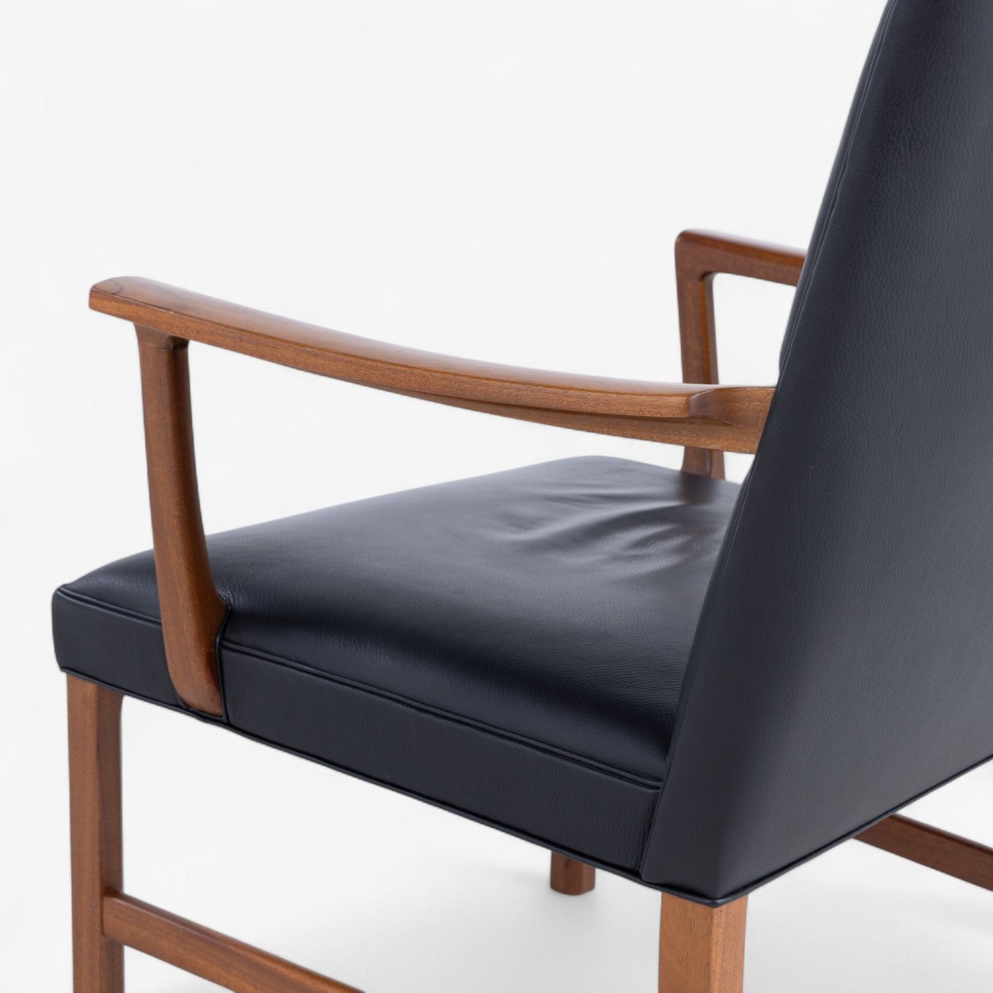 Armstol i mahogni og sort læder.