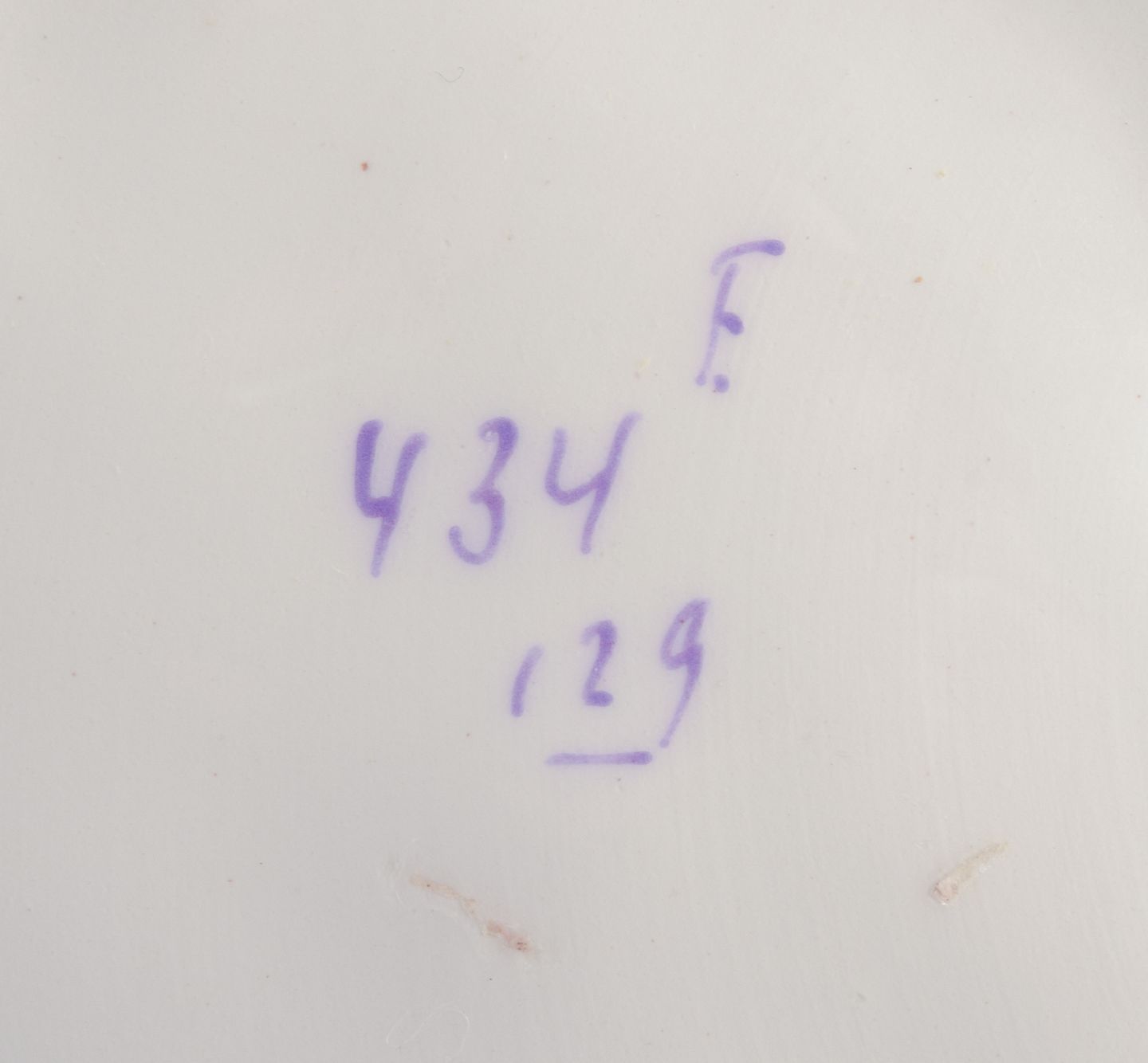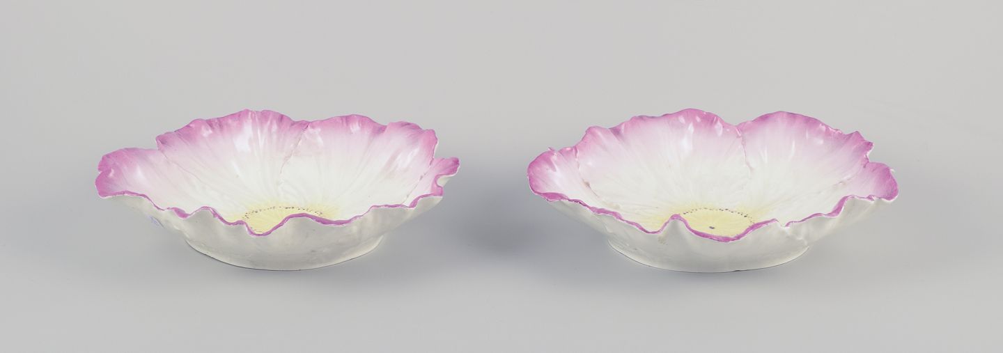 Fremstår i flot stand, med hårrevne og lille skår i toppen af den ene skål samt lille skår i toppen den anden skål.
