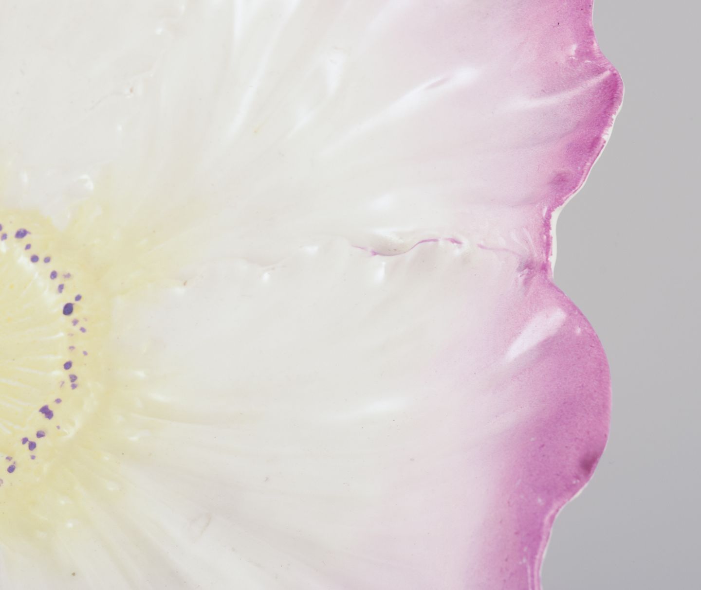 Blomstermotiv. Håndmalet i gult og lyserødt.