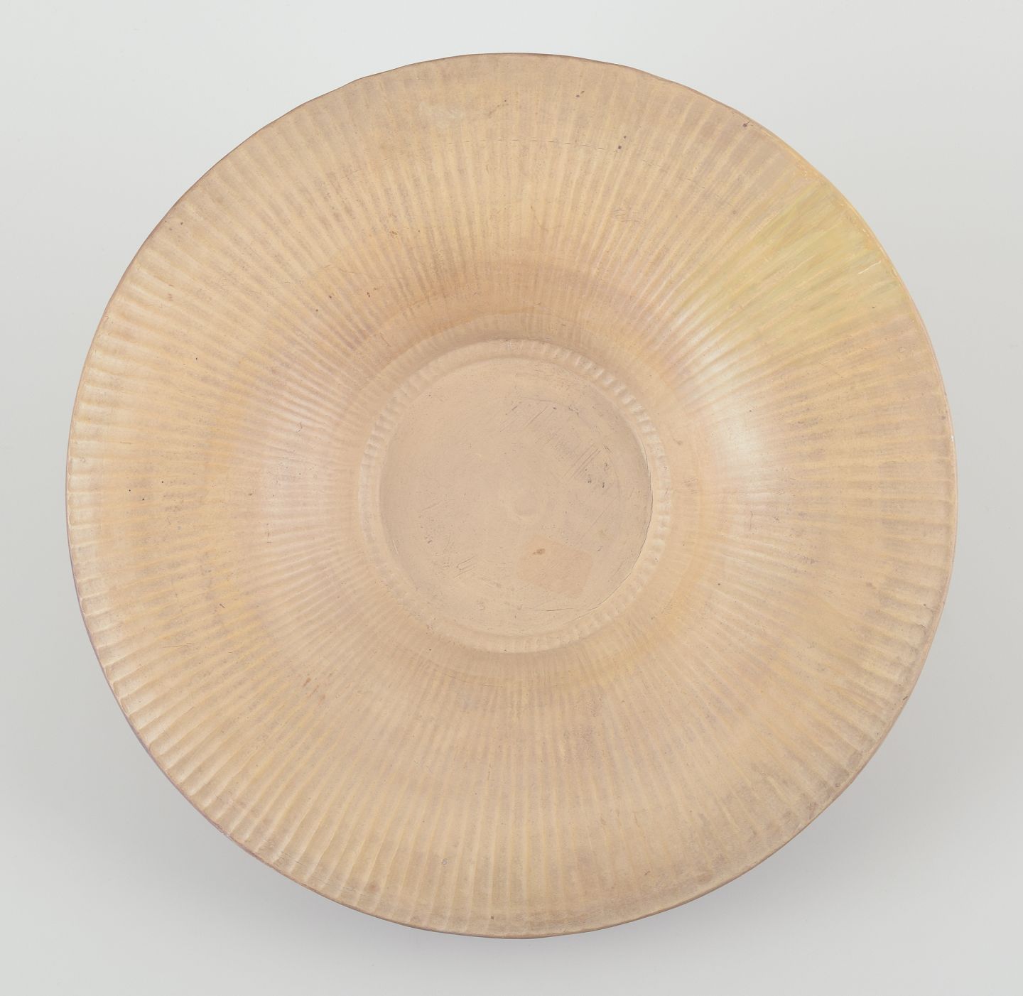 Earthenware bowl. Grooved design.