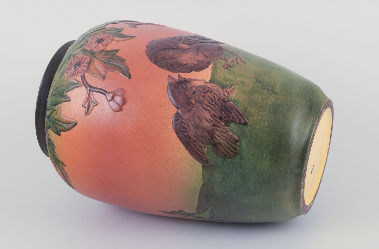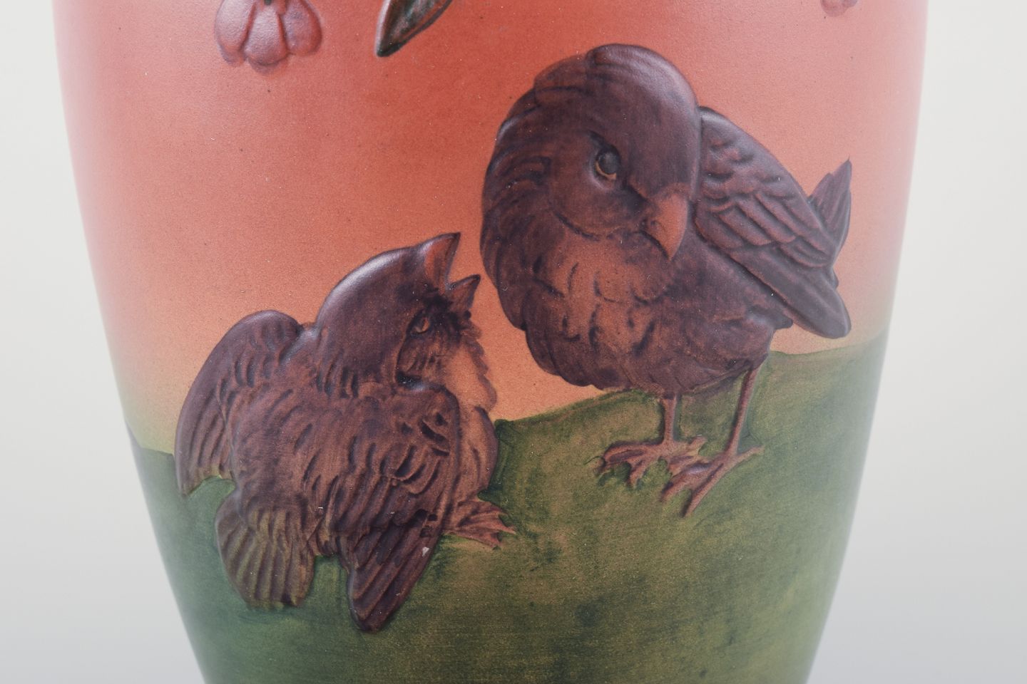 Ipsens Enke, keramikvase med motiv af to gråspurve.