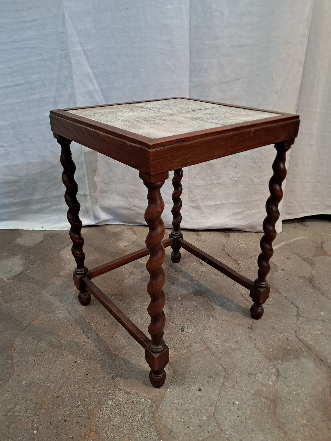Lampebord i massivt egetræ med kakler, fra 1930erne.'