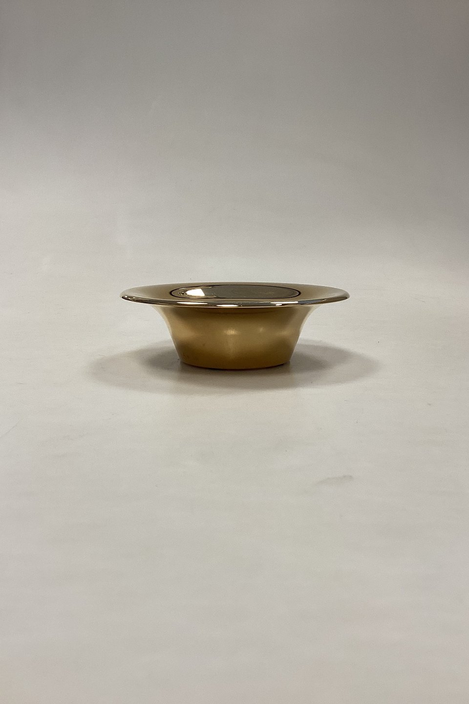 Royal Copenhagen Orion Candlestick. Gold-plated aluminum. Suitable for block candles or tea lights. Designed by Flemming Eskildsen. Signs of wear and scratches on the inside, see photo.