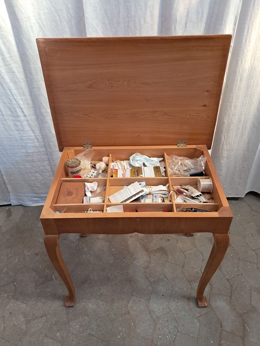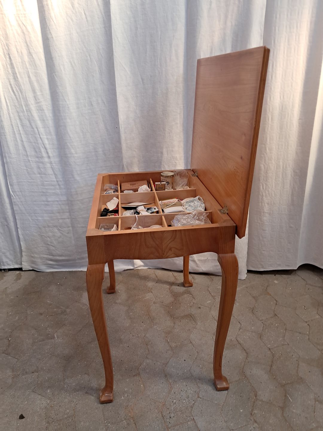 Sybord i fineret elmetræ, fra 1940erne.