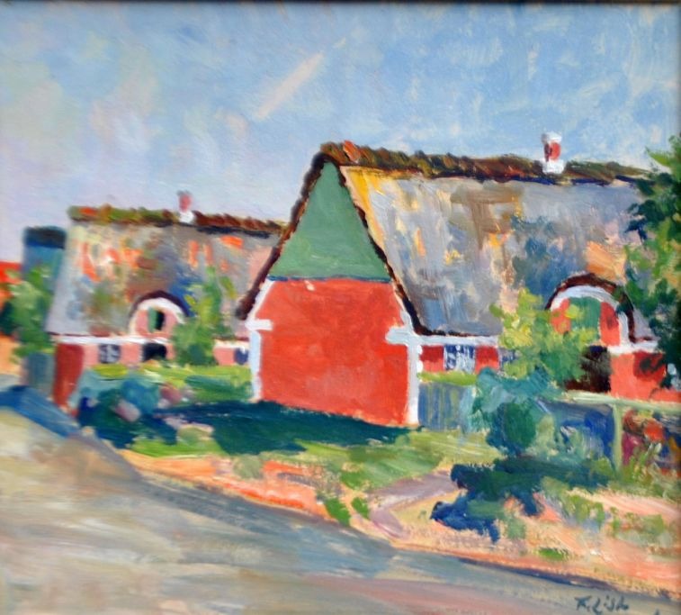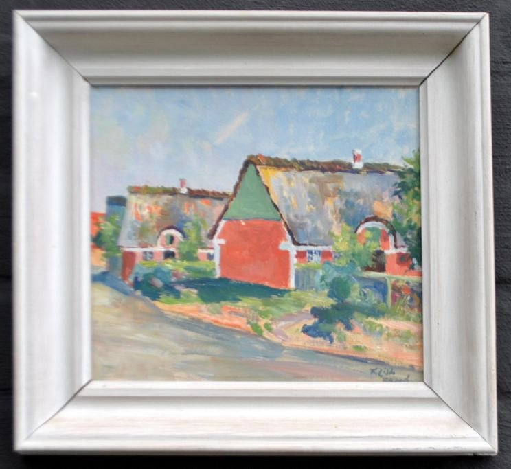 List, Franz (1898 - 1986) Denmark: City scene from Fanø. Oil on masonite. Signed. 19 x 21 cm.