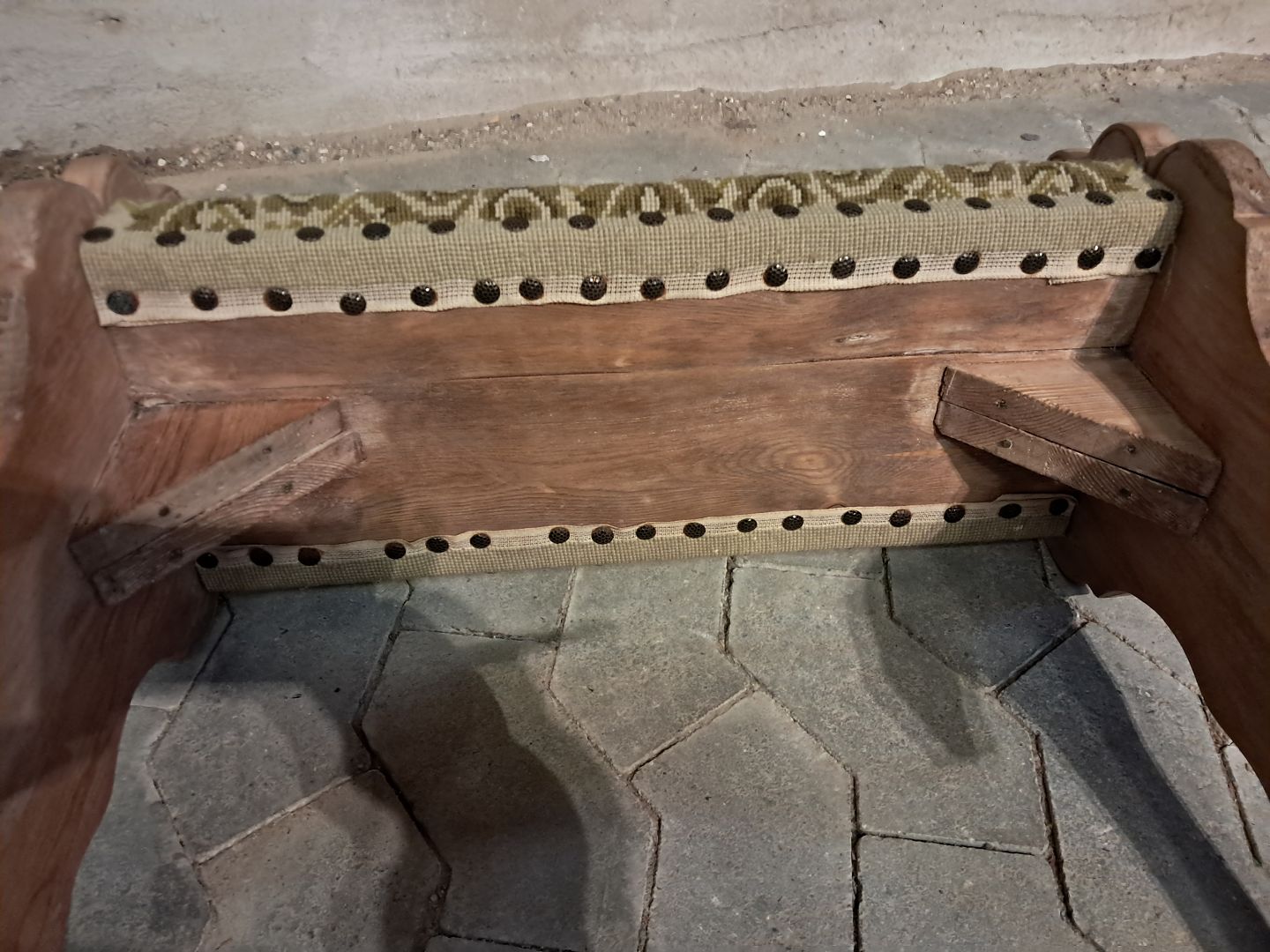 Stabil bænk i massivt fyrretræ, fra 1900erne.