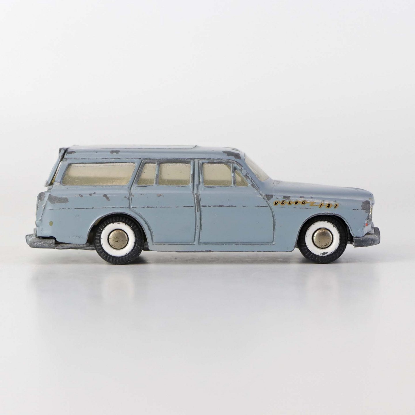 Blå Volvo 221 Amazon legetøjsbil i lakeret metal med gummi hjul. Modelbilens bagklap kan åbnes. Nr. 830