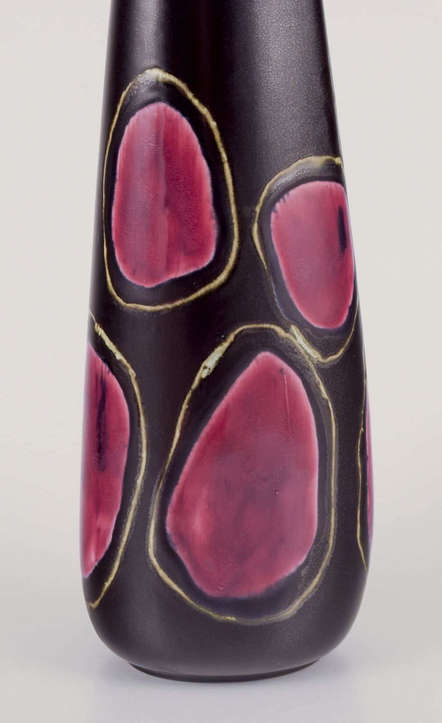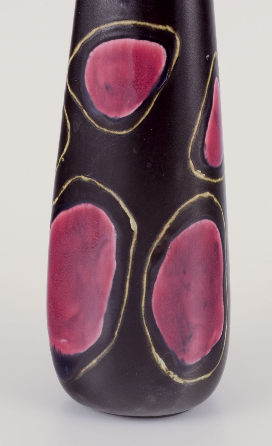 Glasur i mørkerøde og sorte toner.