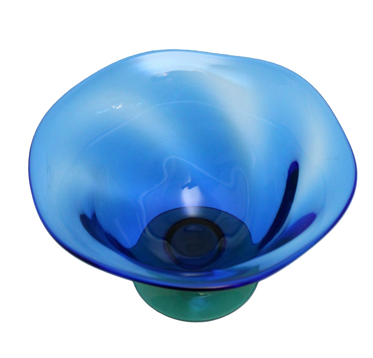 Orrerfors, Sweden, Louise. Stor svejfet/twistet glasskål i transparant blåt glas på grøn fod. Designet af Erika Lagerlielke. Højde 16 cm. Diameter 25 cm. Flot stand uden ridser. Pris: 475 kr.