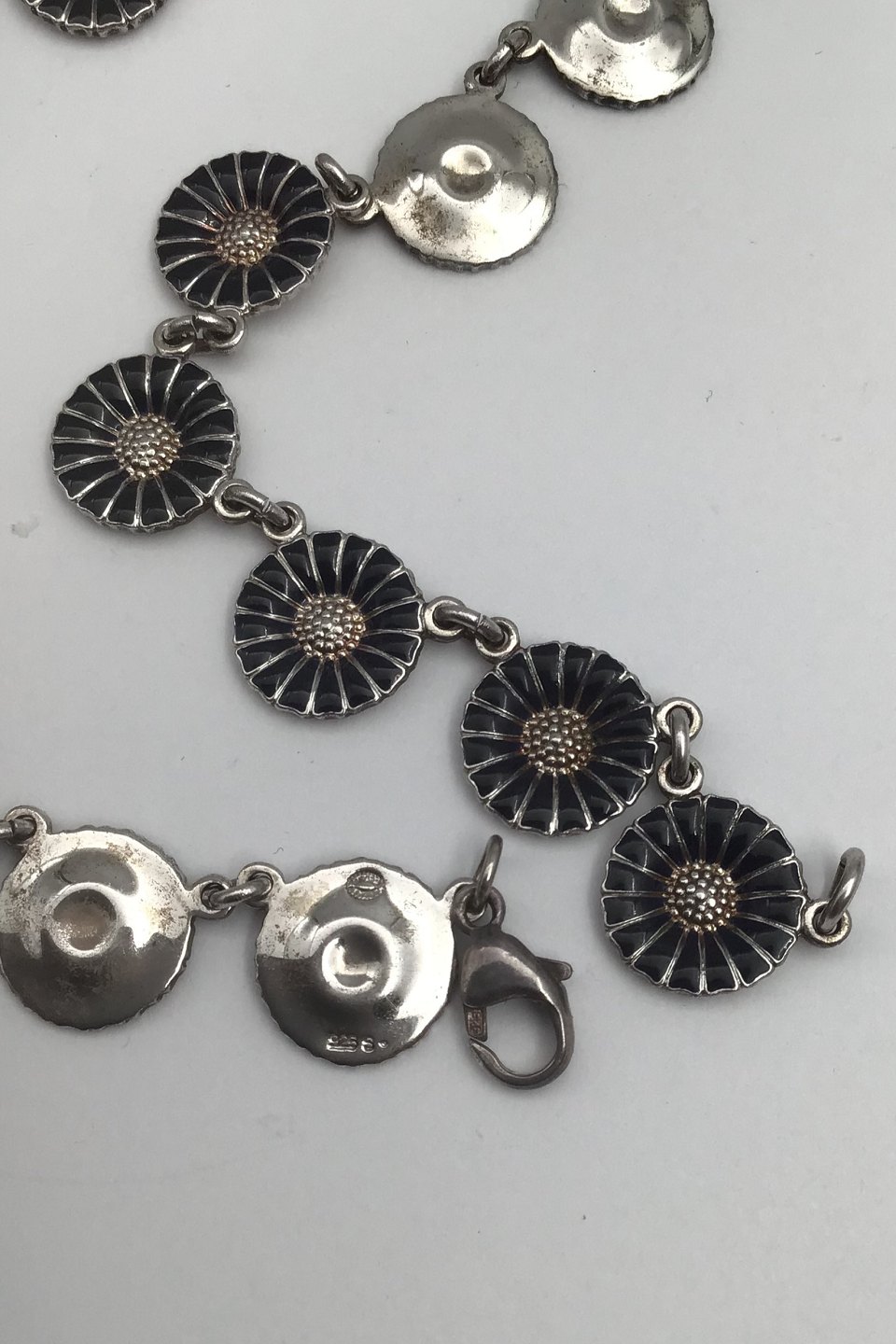 Georg Jensen Sterling Sølv Marguerit Halskæde, sort