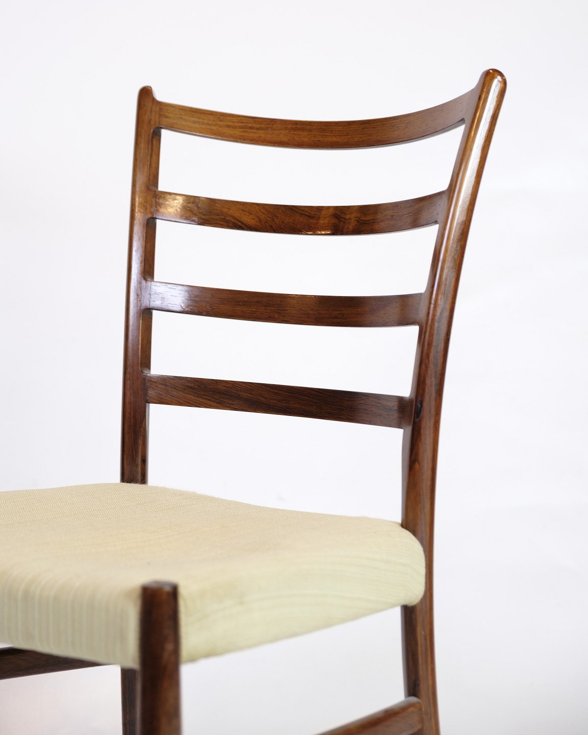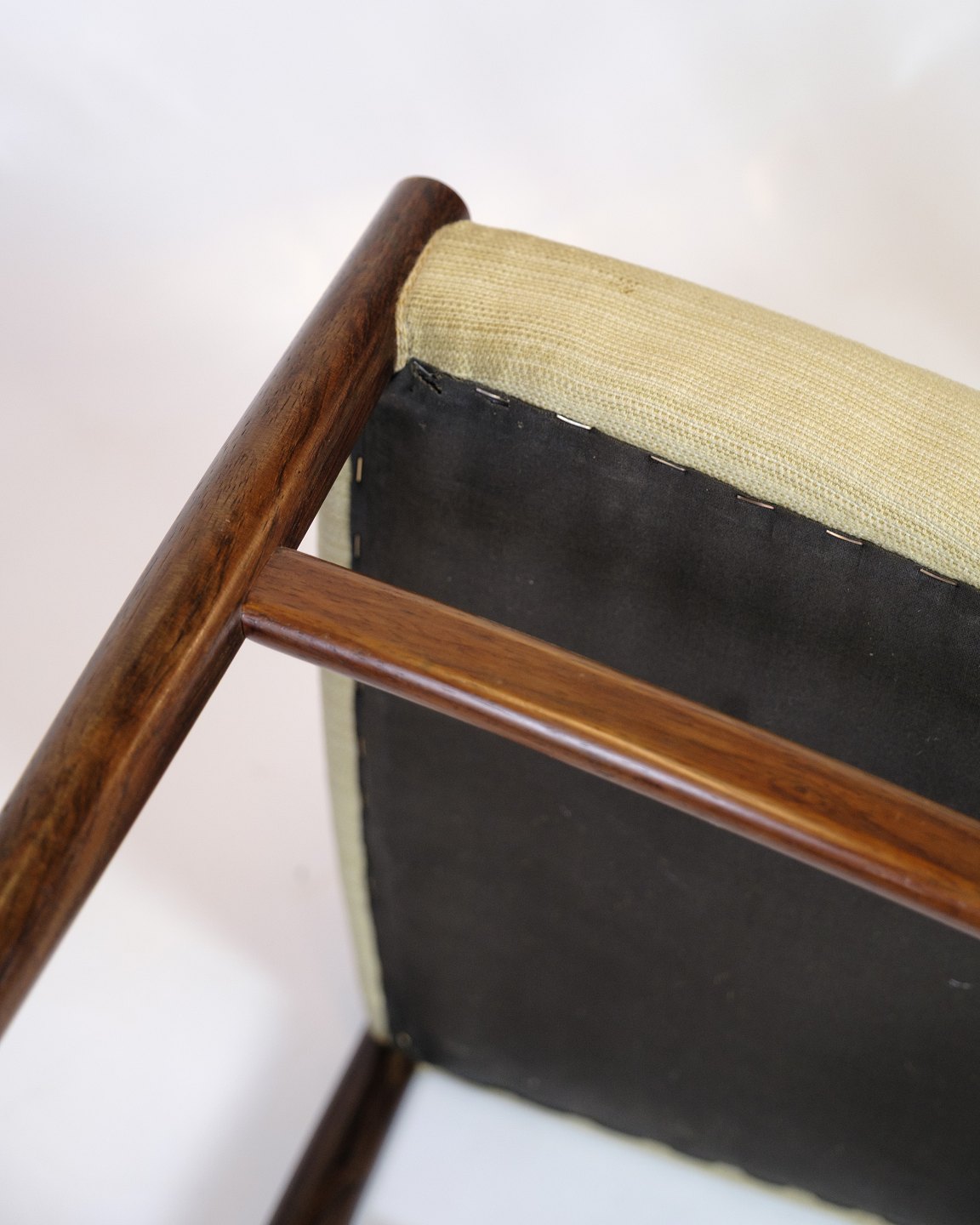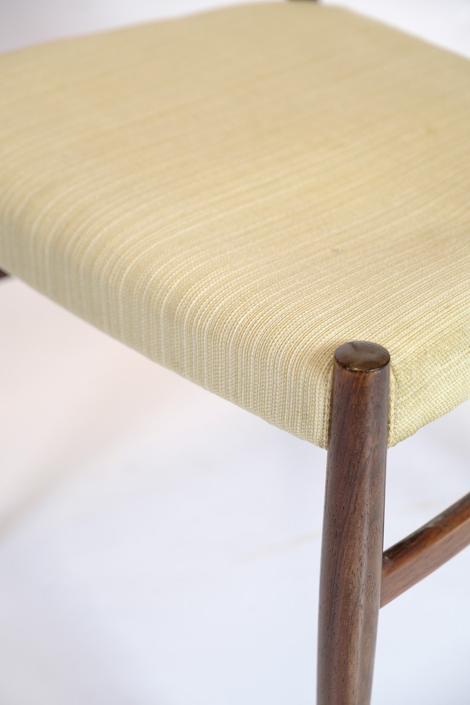 Spisebordsstol i palisander med lyst uldstof, designet af N.O. Møller i 1960’erne.
