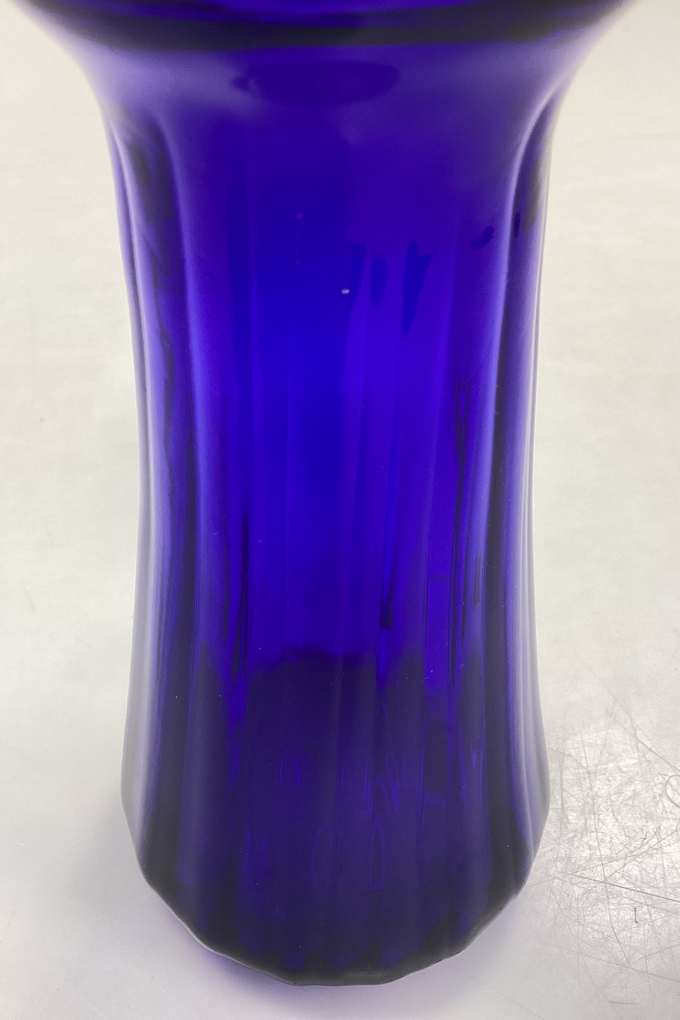 Koboltblå Blomsterløg Vase Holmegaard / Kastrup / Fyens Glasværk. Stribet optik. Egnet til hyacinter, tulipaner etc.