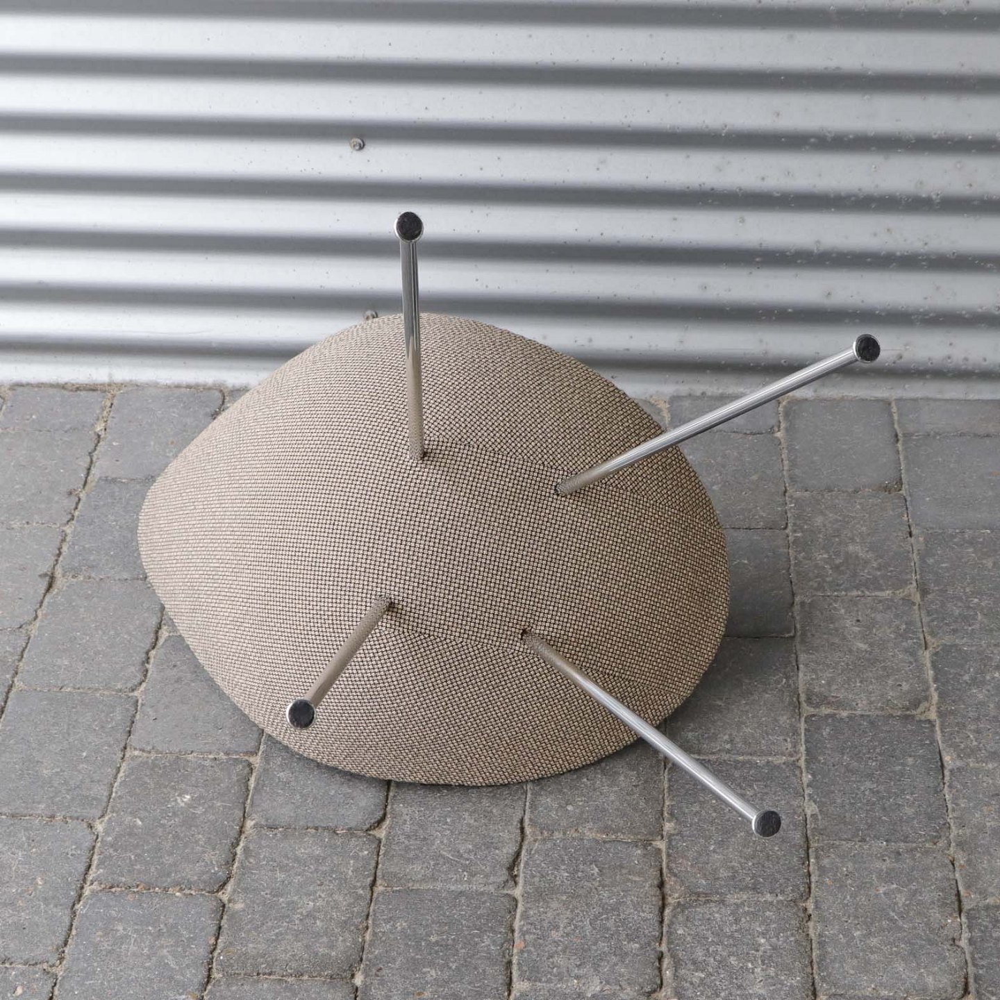 Spisebordsstol med ben i rustfrit stål og polstret sæde betrukket med struktureret stof i beige og sort. Model Dråben nr. 3110