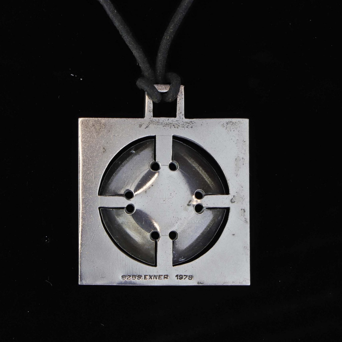 Halskæde med lædersnor og kvadratisk vedhæng i sterling sølv.
