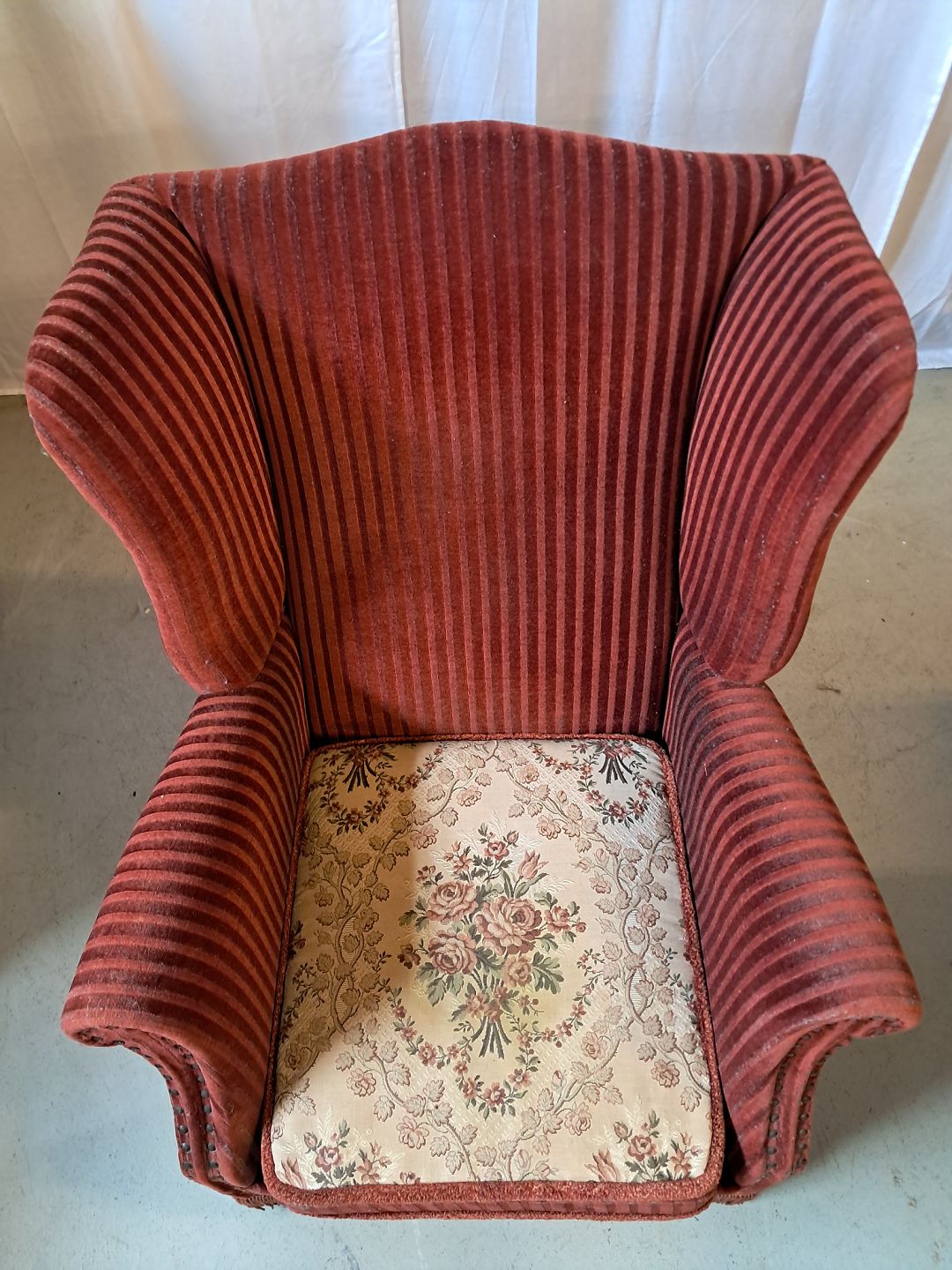 Lænestol med velourbetræk, fra 1970erne.
