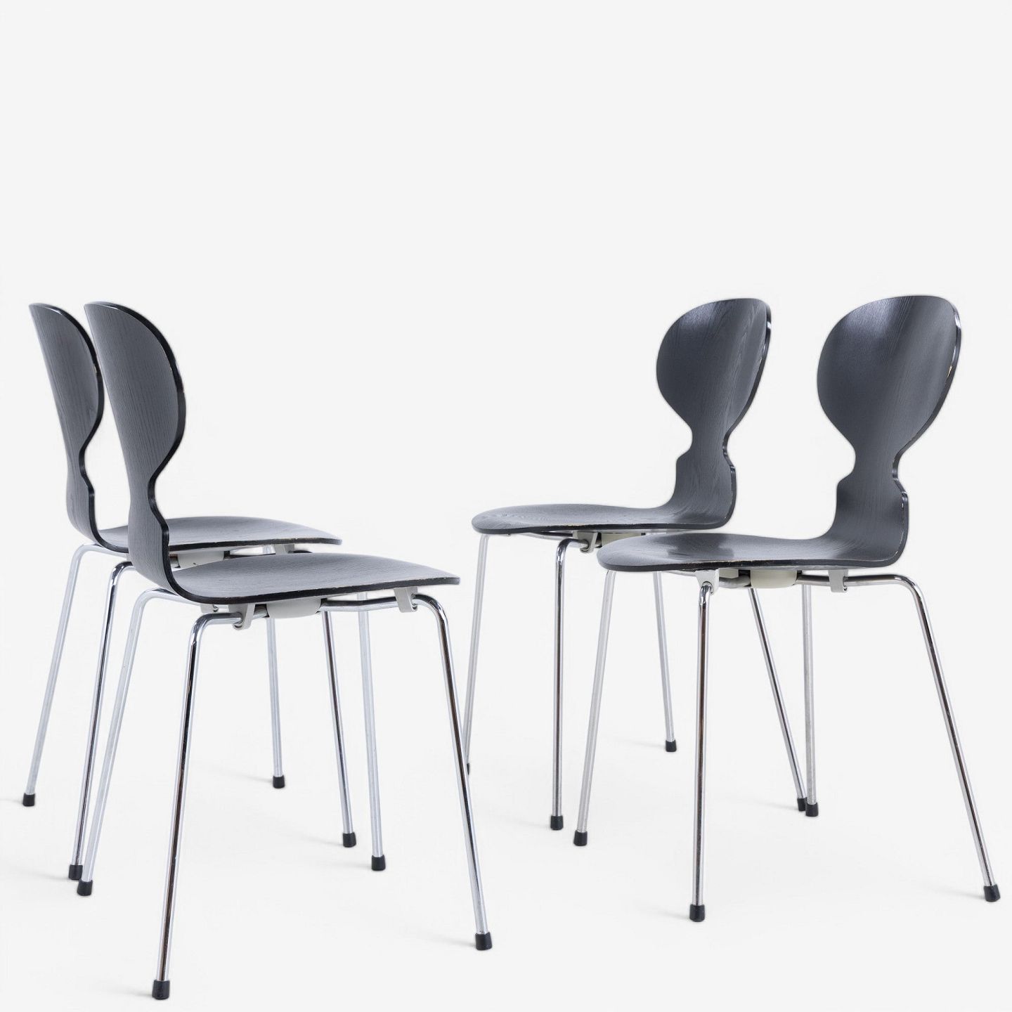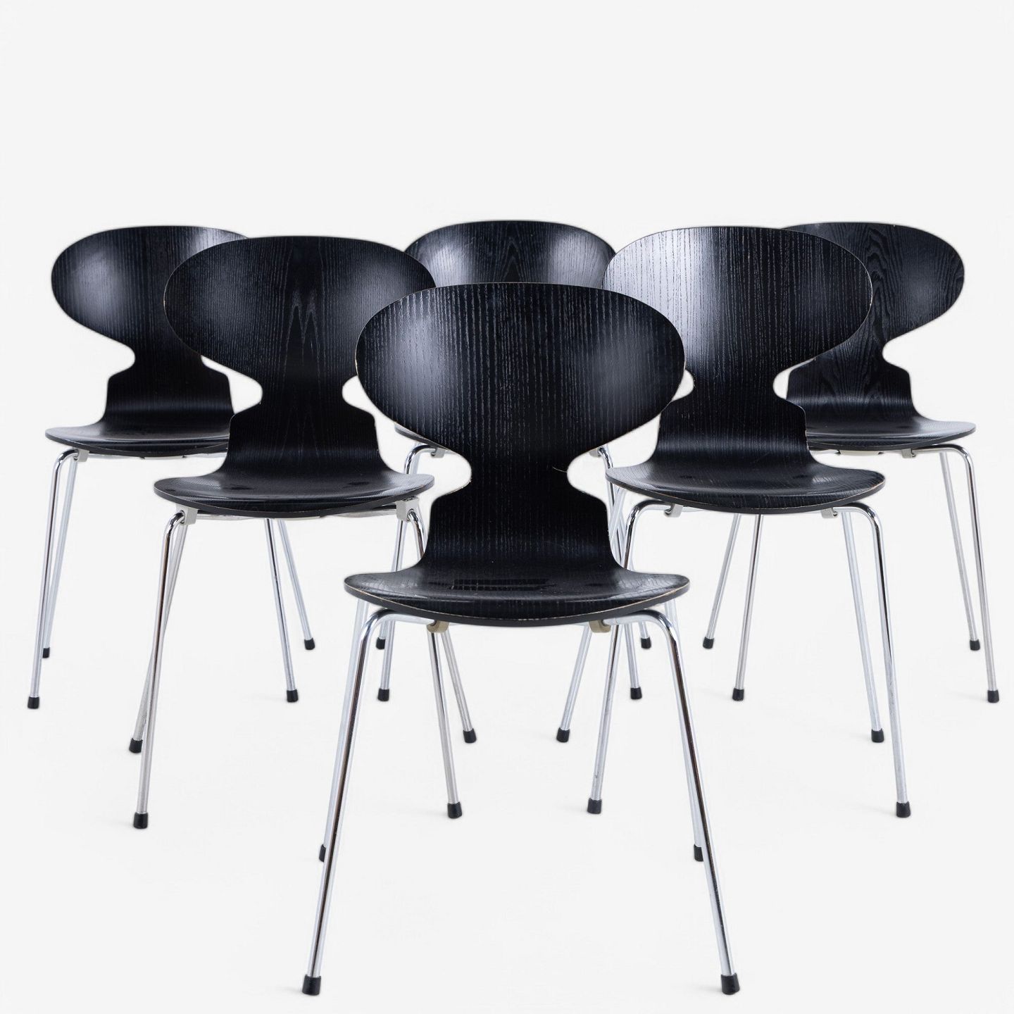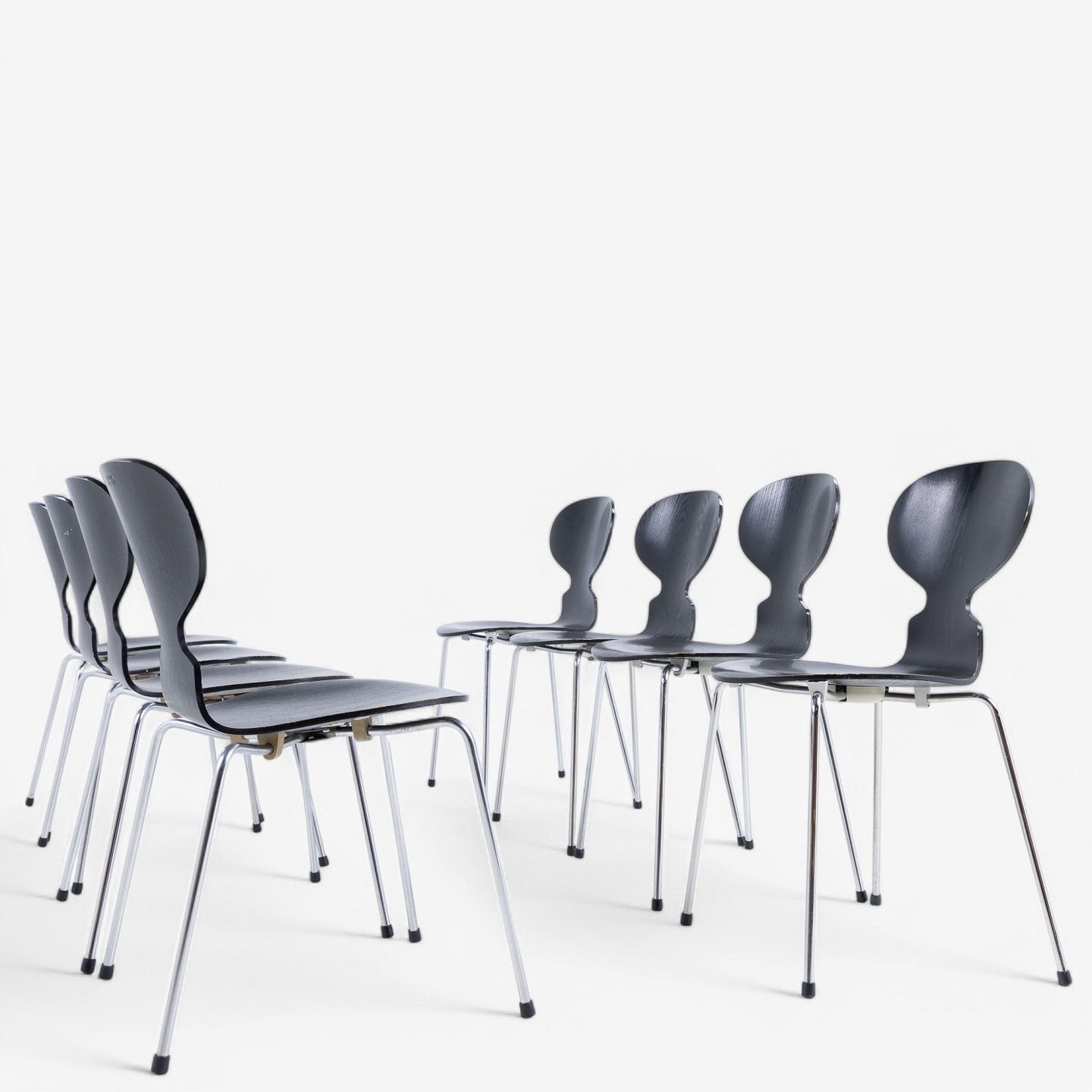 AJ 3100 - Sæt á 6 sortlaserede Myrestole med stel i stål.