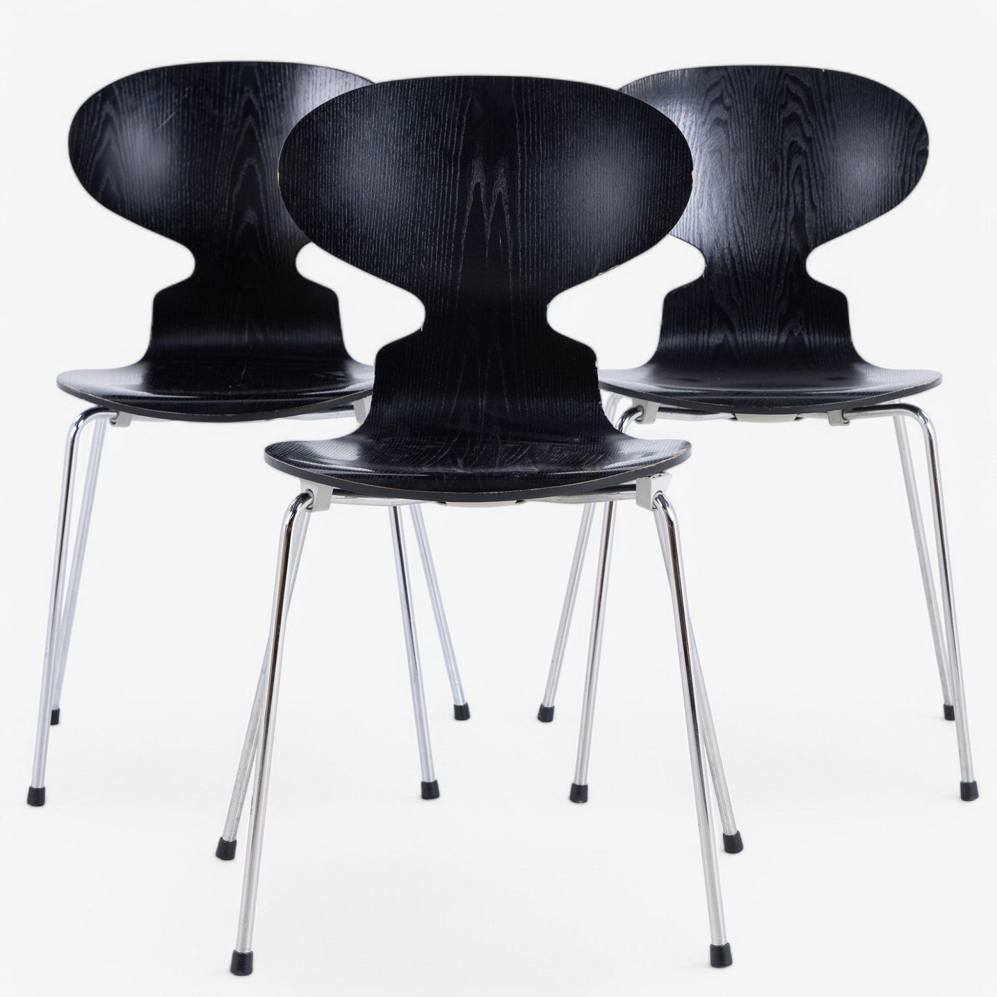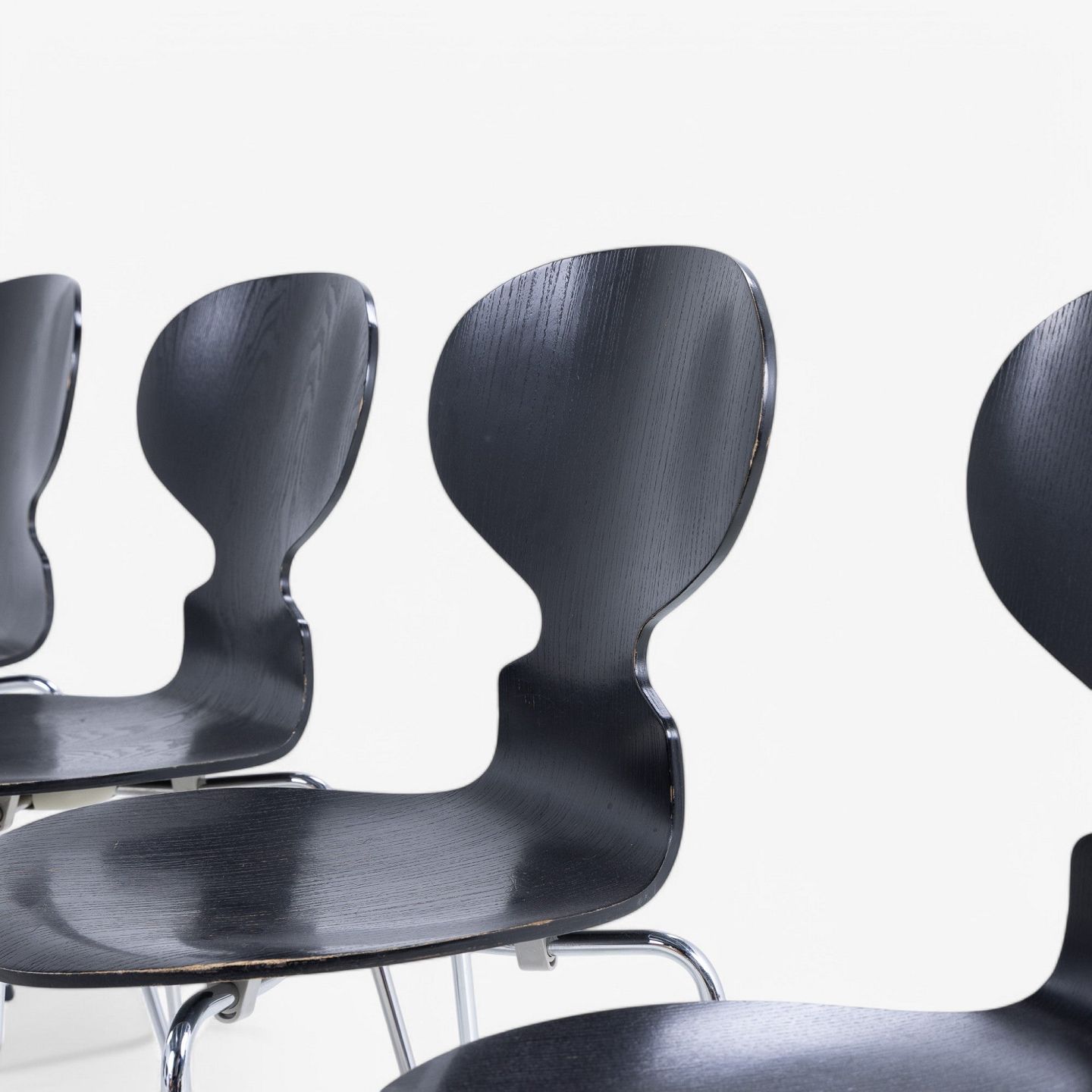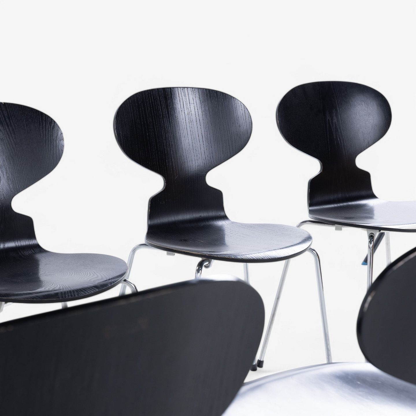 AJ 3100 - Sæt á 6 sortlaserede Myrestole med stel i stål.