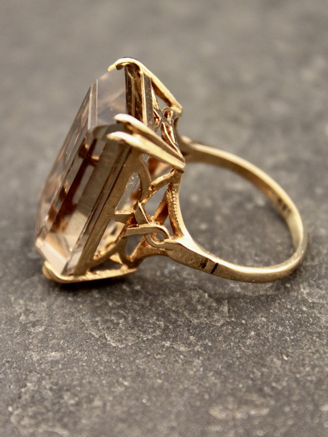 14 karat guld ring størrelse 60 med røgtopas 2,5 x 1,5 cm. stemplet GIFA 585 emne nr. 616270