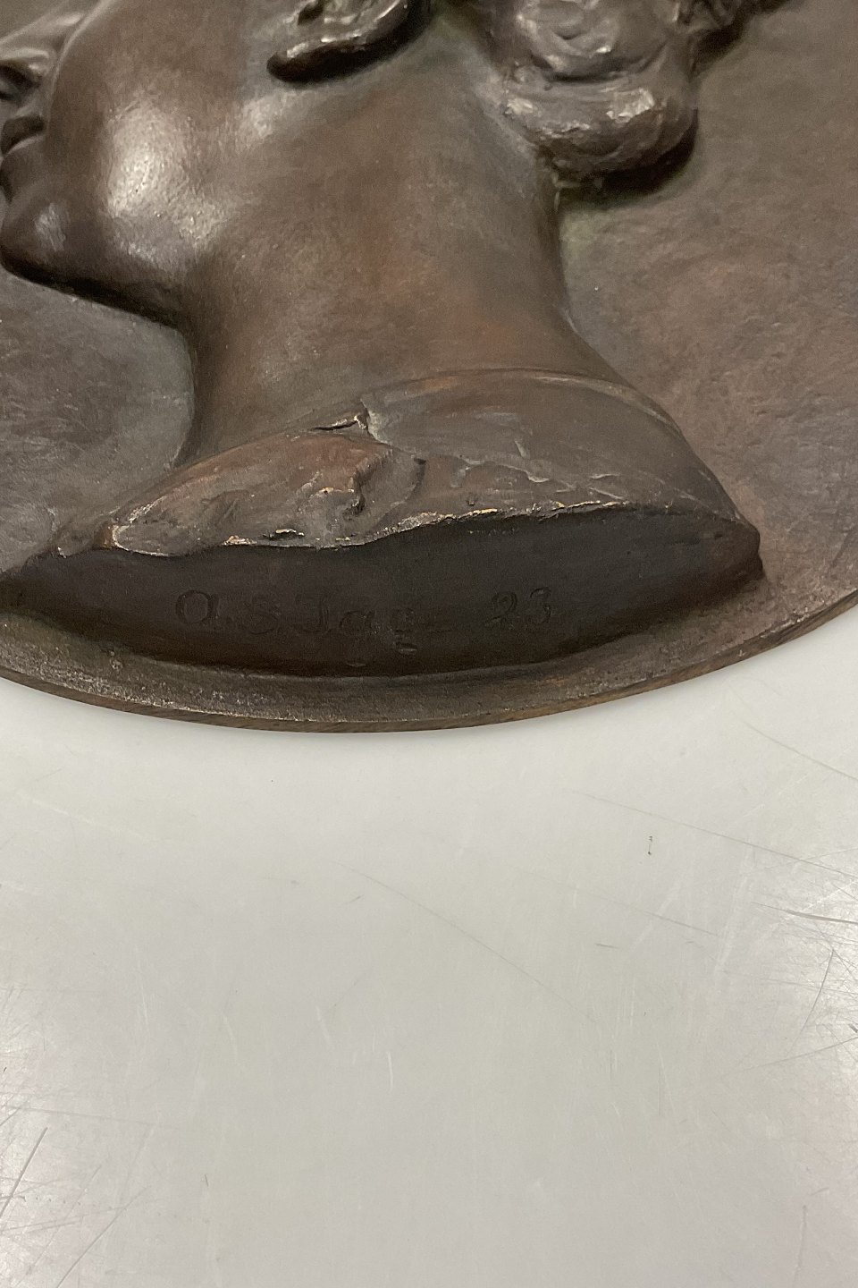 Dansk silhouetportræt af ung dame i Bronze Signeret A.S. Jag 23