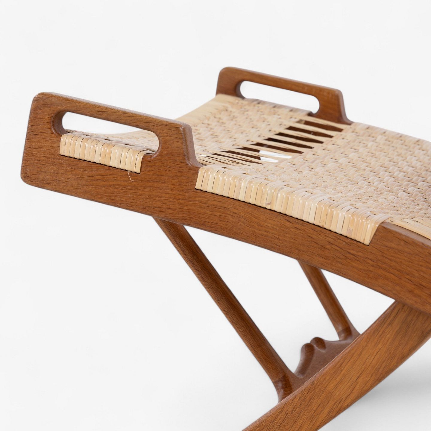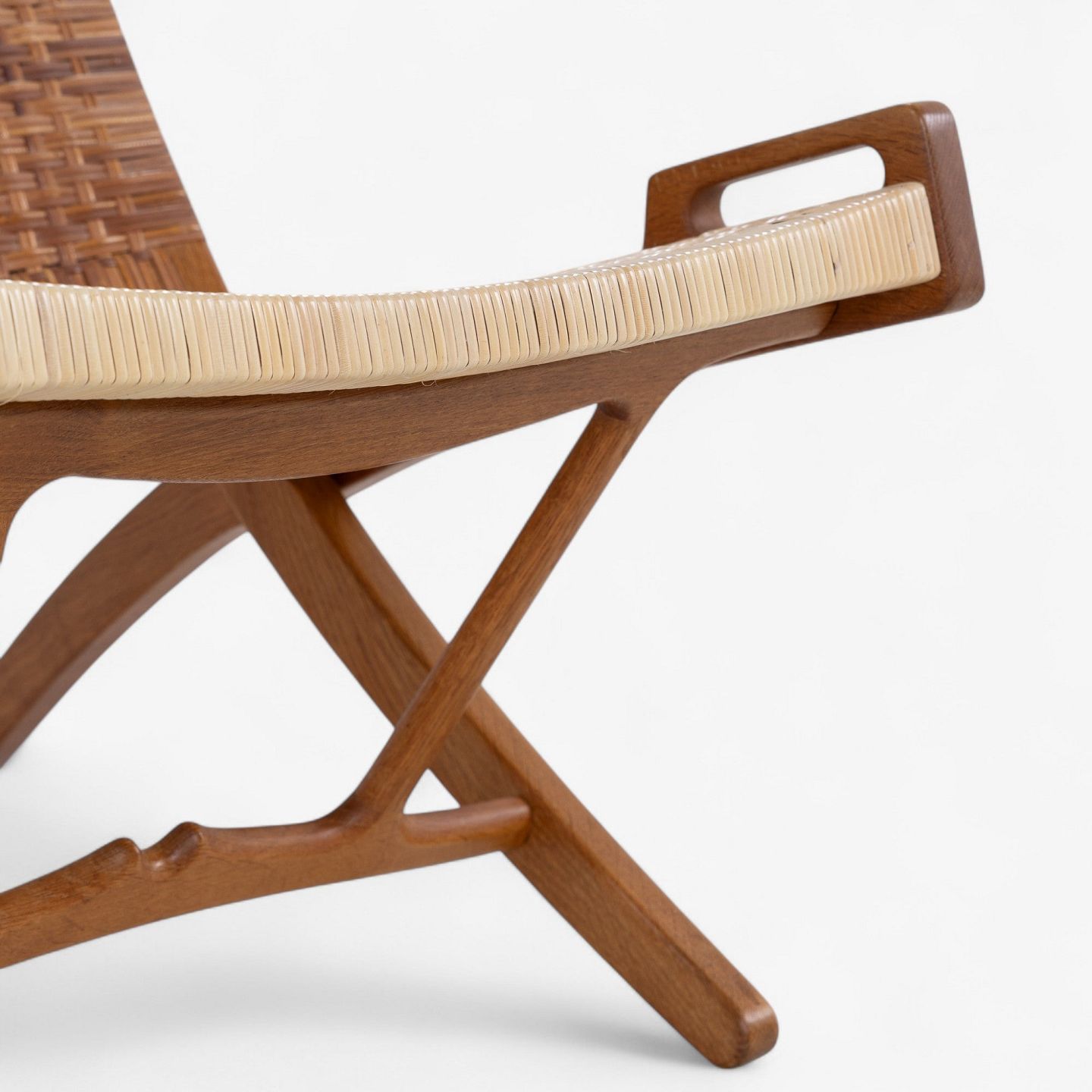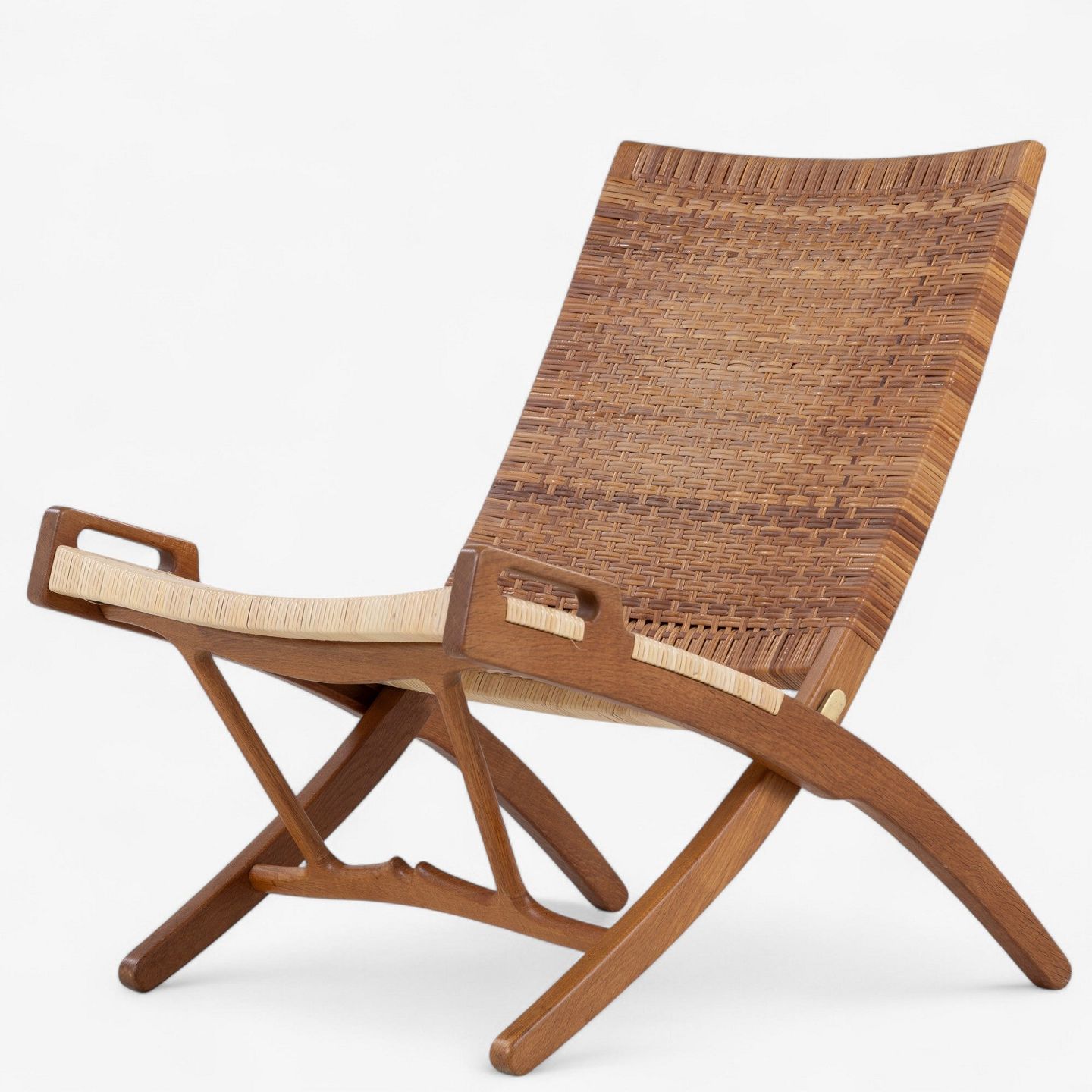 JH 512 - 'Kamin'-foldestol i patineret egetræ med sæde og ryg i delvist originalt flet. Original krog til vægophæng medfølger. Formgivet i 1949.