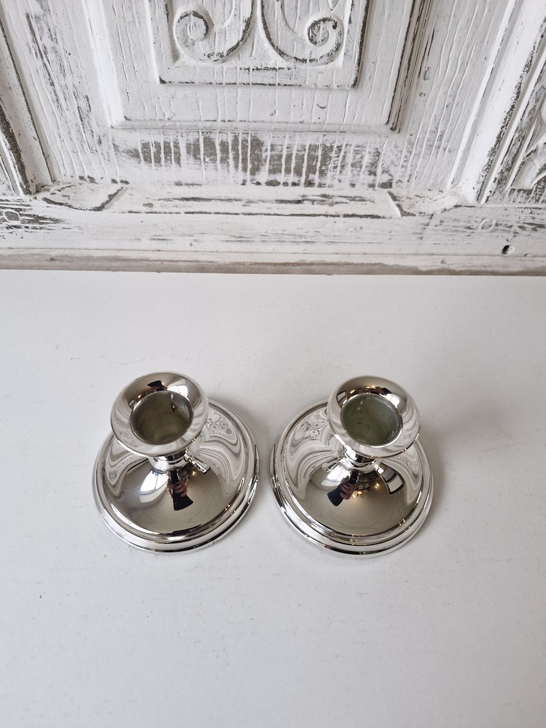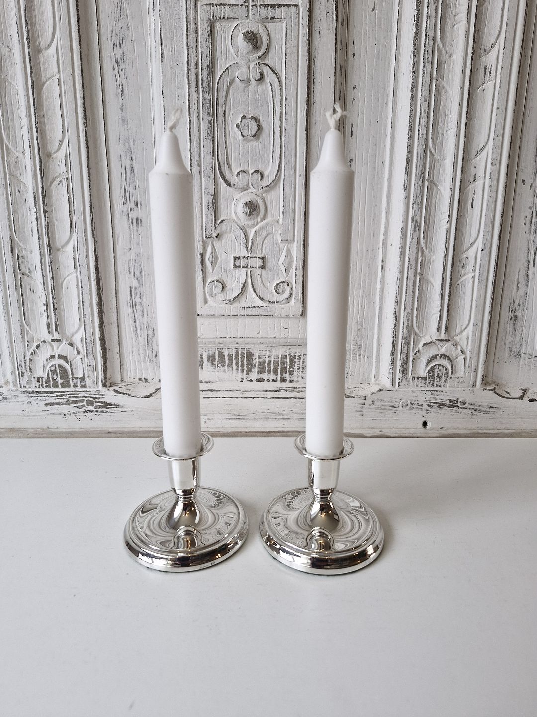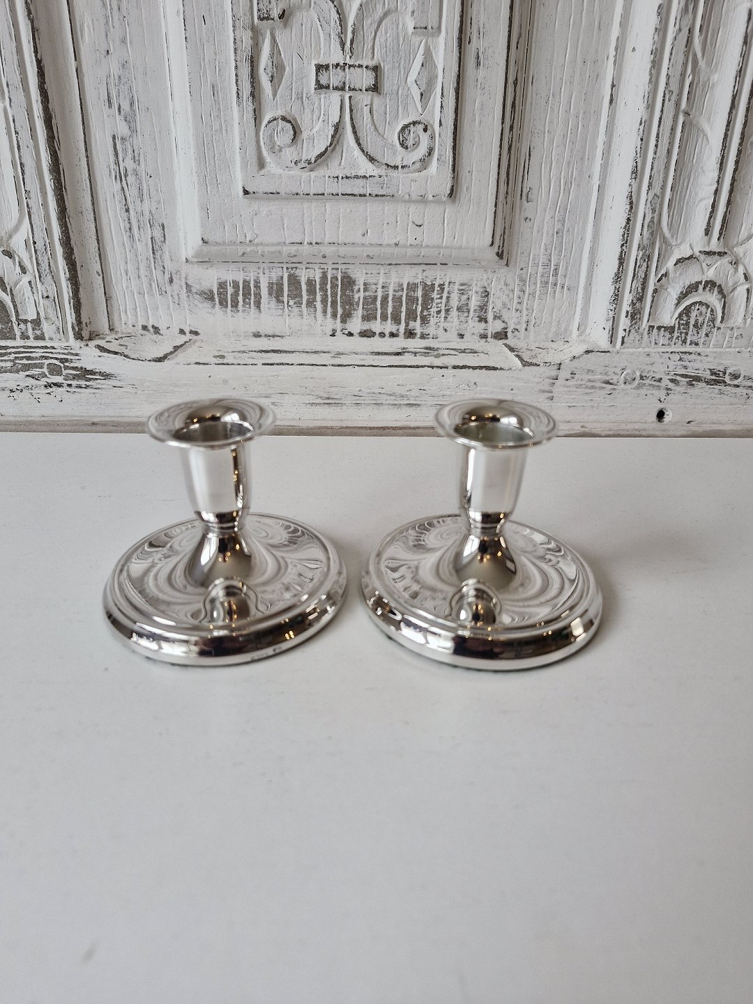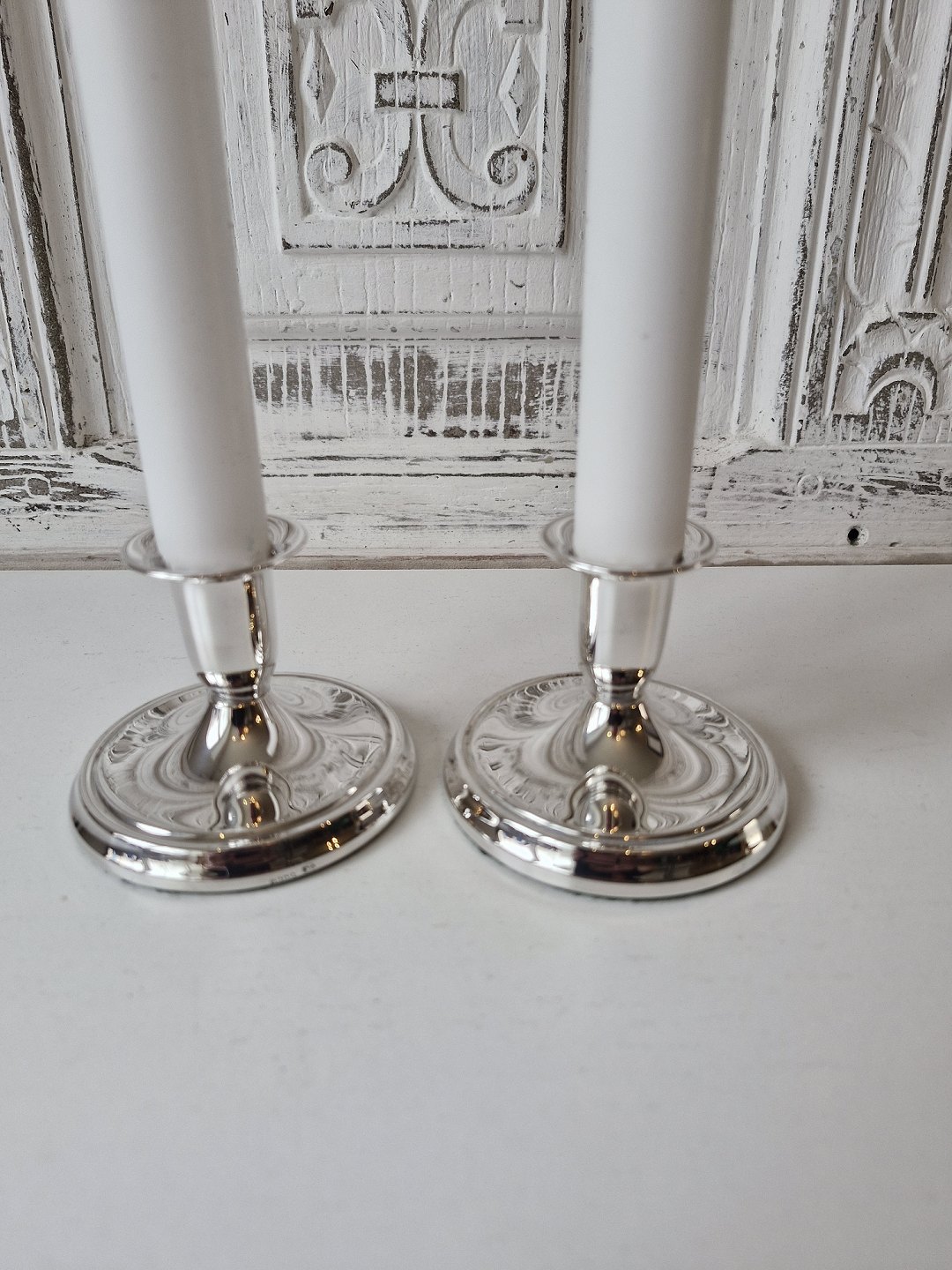 Par lave lysestager i sølv