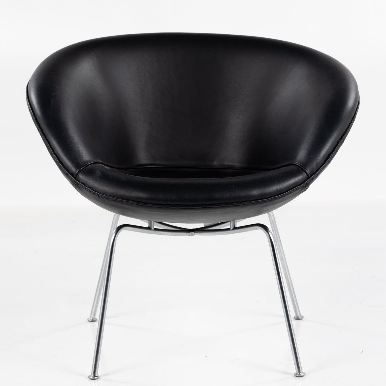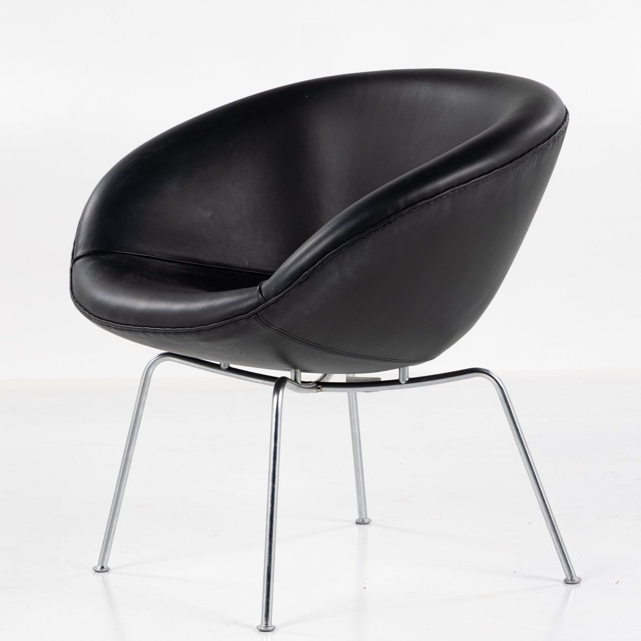 AJ 3318 - 'Gryden'-lænestol i sort King-læder med ben af stål.
