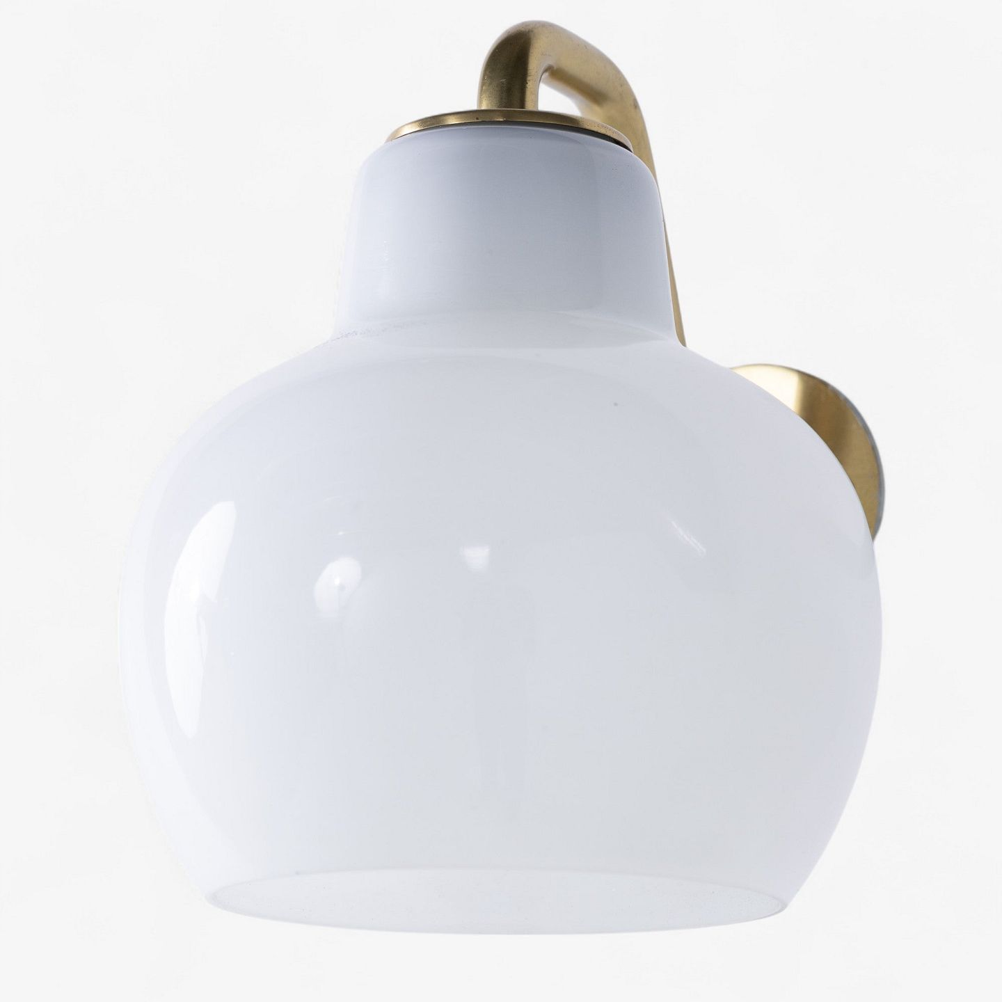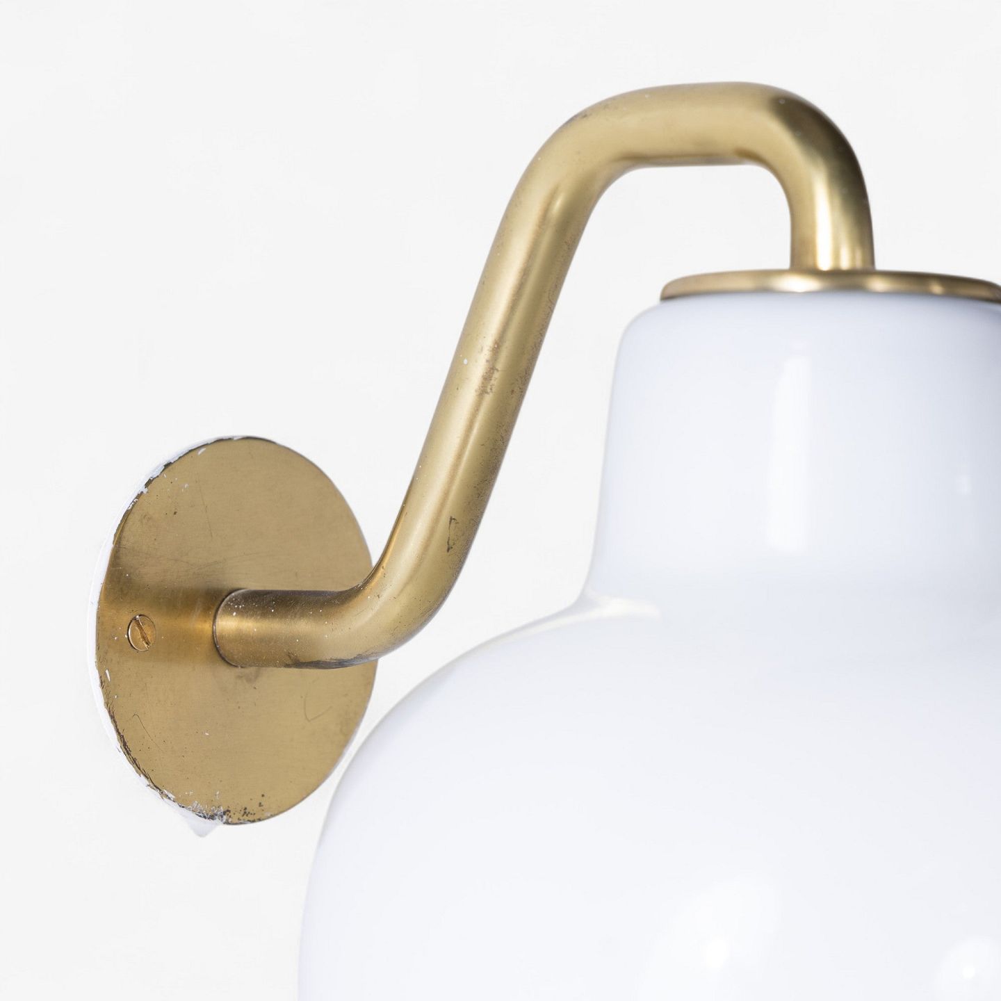 Væglampe i patineret messing med skærm i opalglas. Bemærk: Modelfoto.