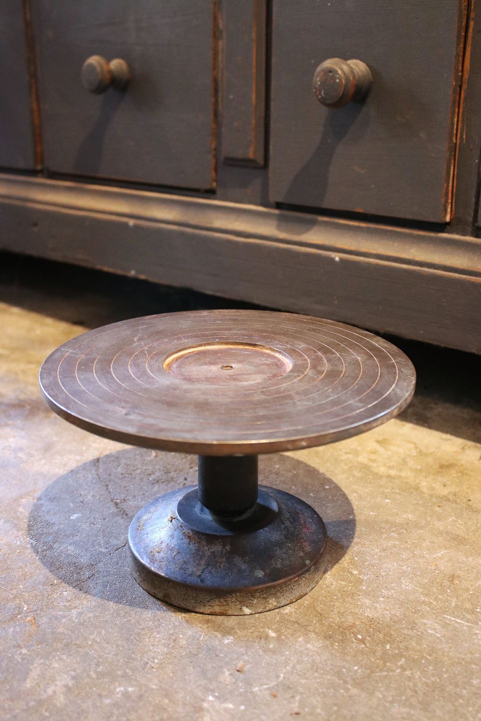 Gammel drejeskive på fod i jern med en rigtig fin patina.