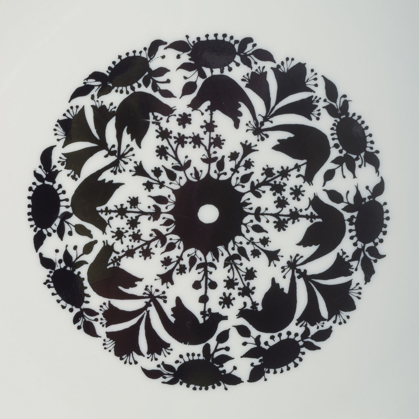 Rosenthal Studio-Line porcelænsfad med sort/hvidt grafisk mønster i midten. Hvid glasur på overside og bagside.