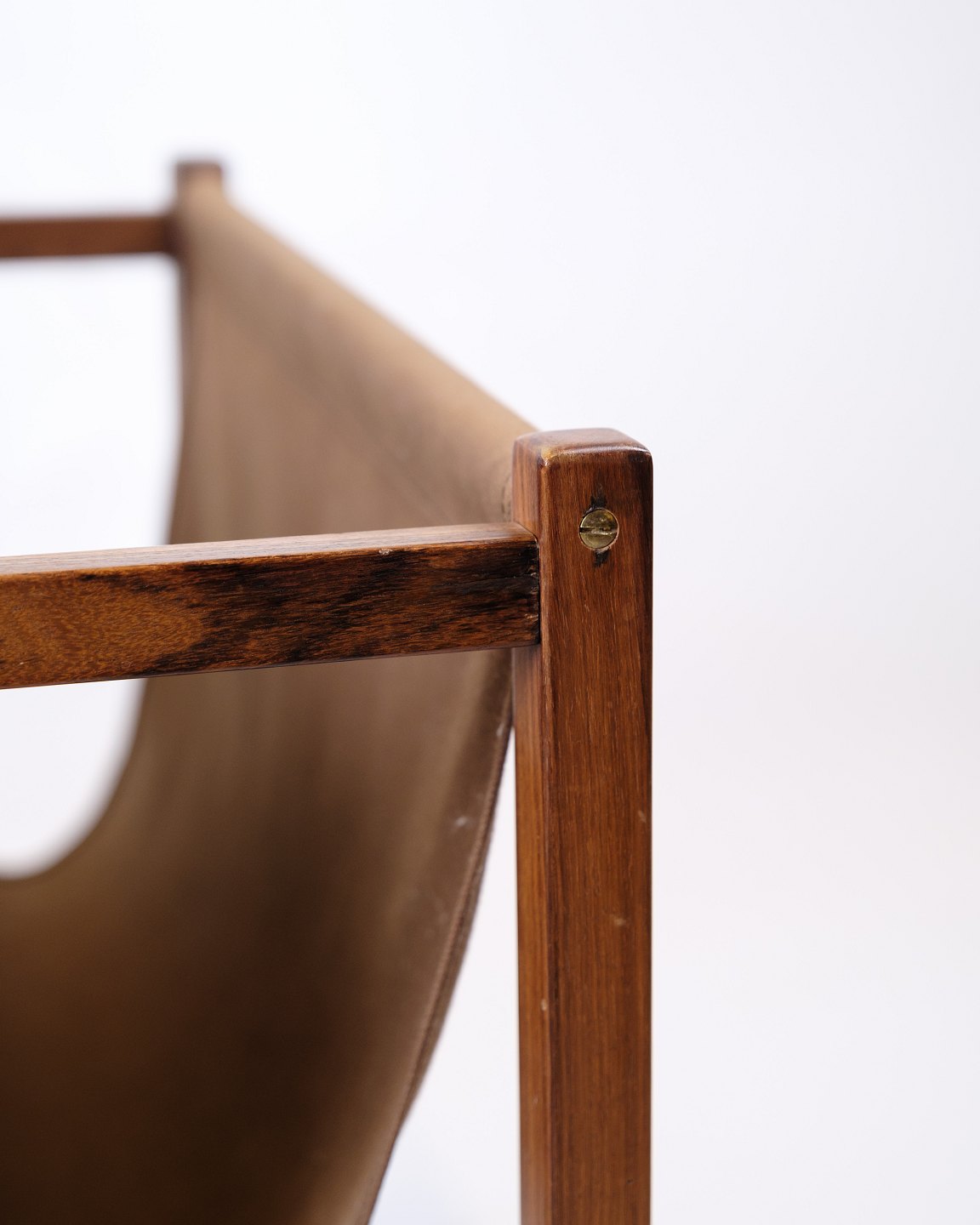 Avis- og magasinholder i palisander og brun canvas. Dansk design fra 1960’erne.