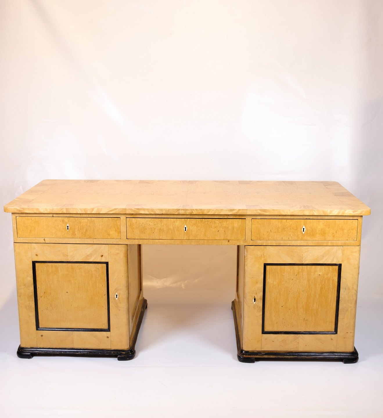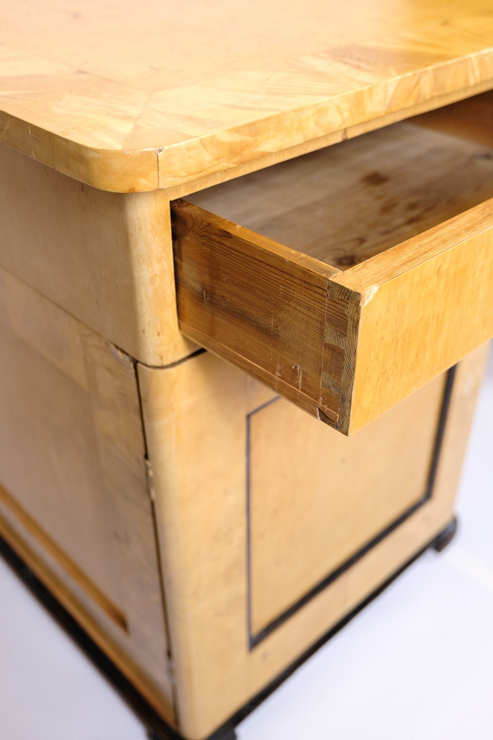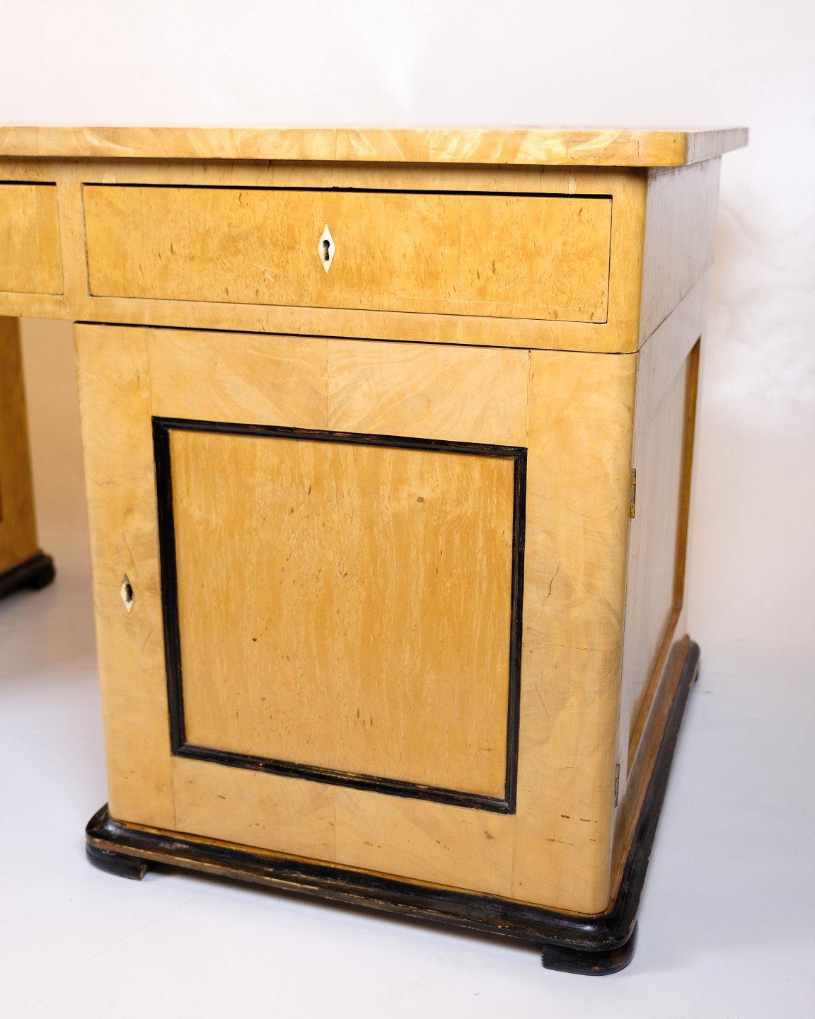 Antikt Skrivebord – Birketræ & Intarsia – 1840’erne
