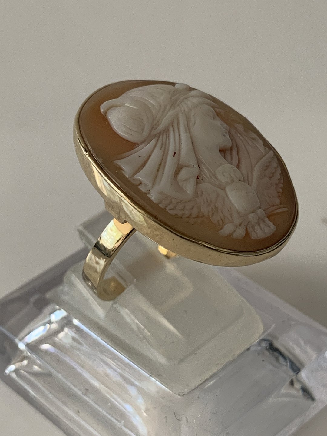 Large Camé gold ring, 14 karat gold