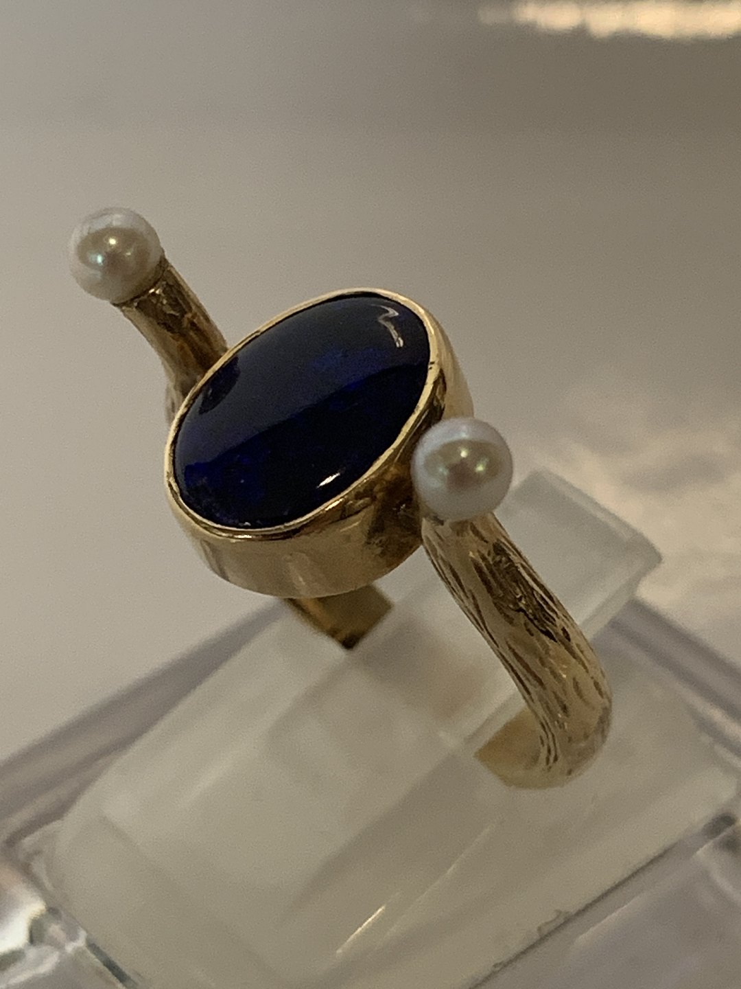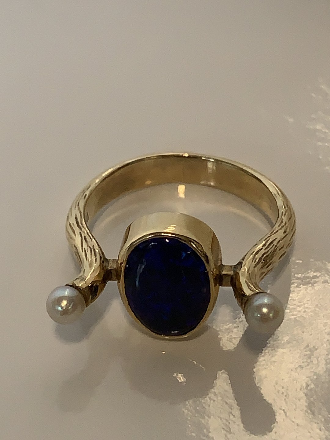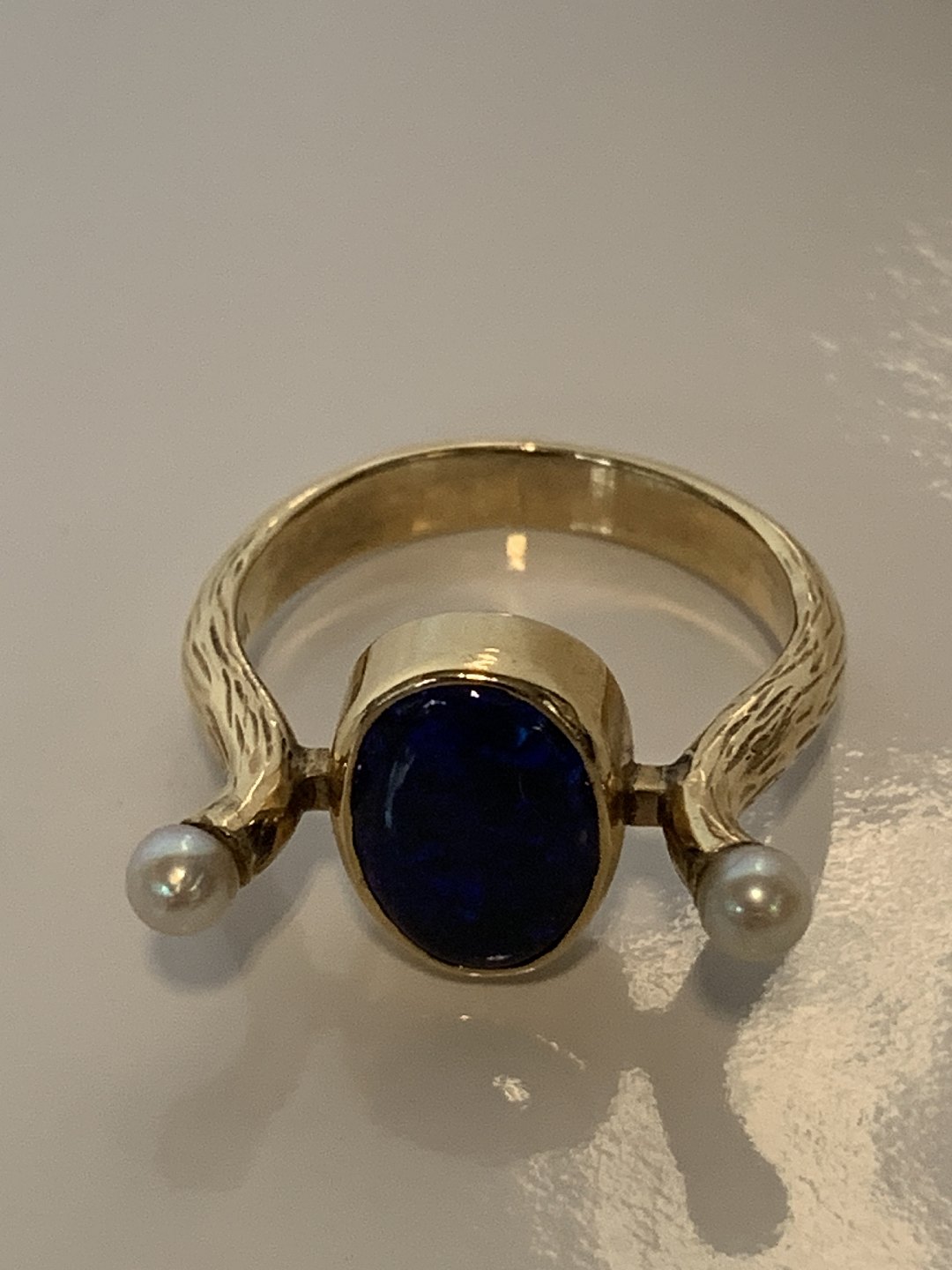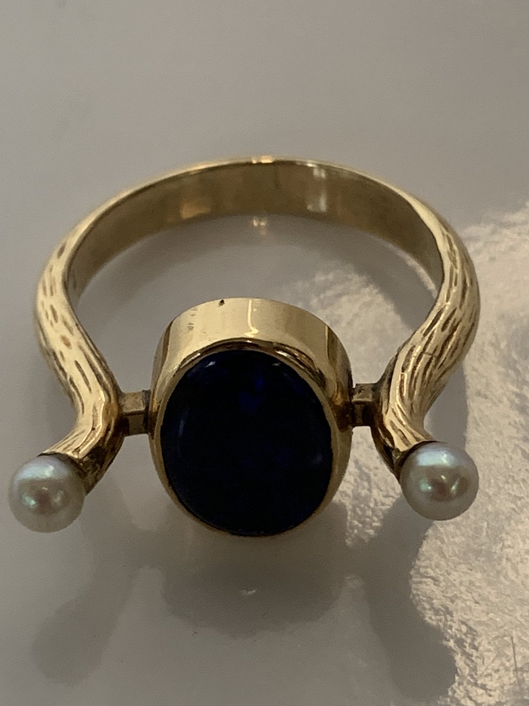 Guldring med Blå sten & Perler,14 Karat