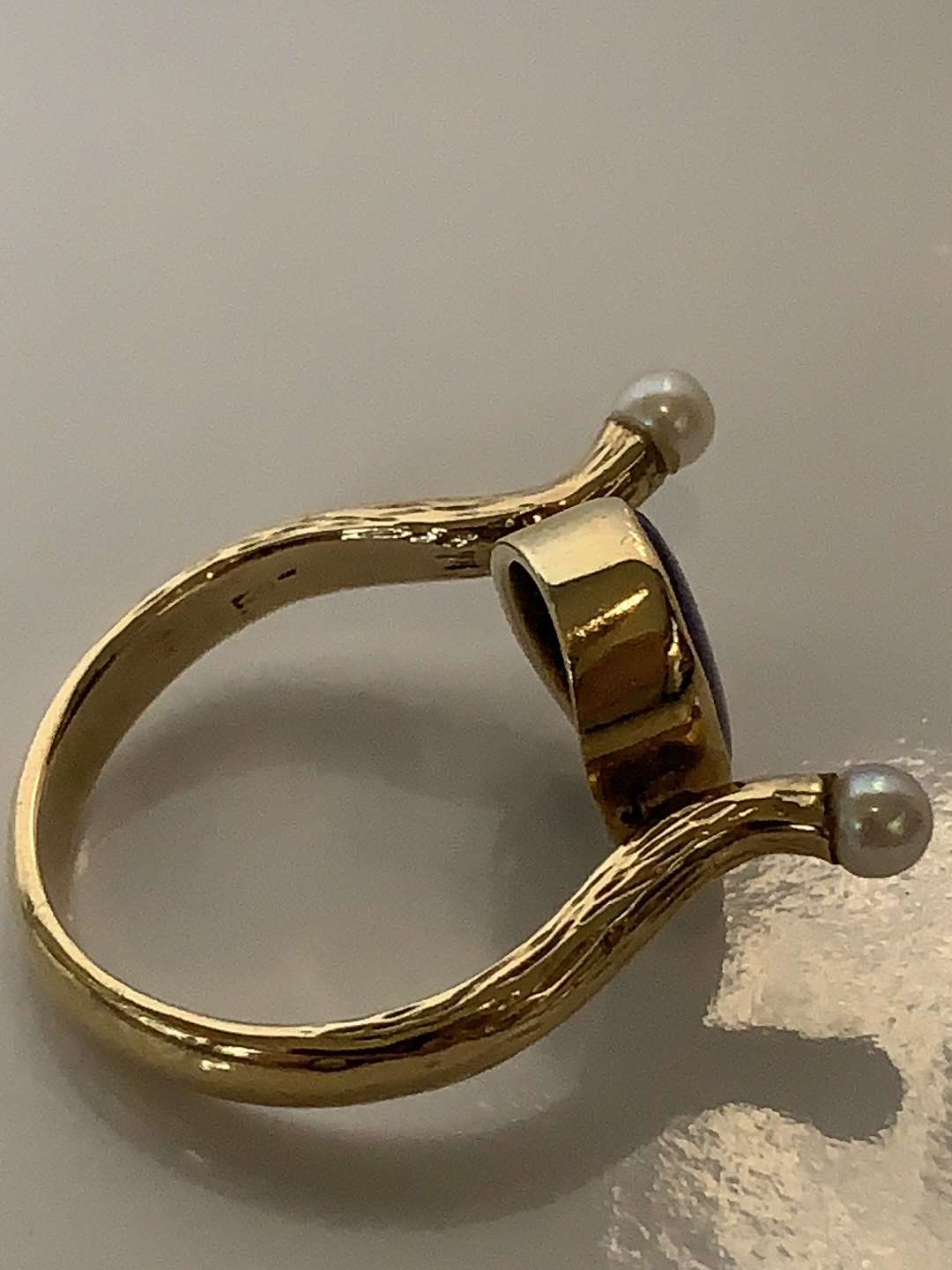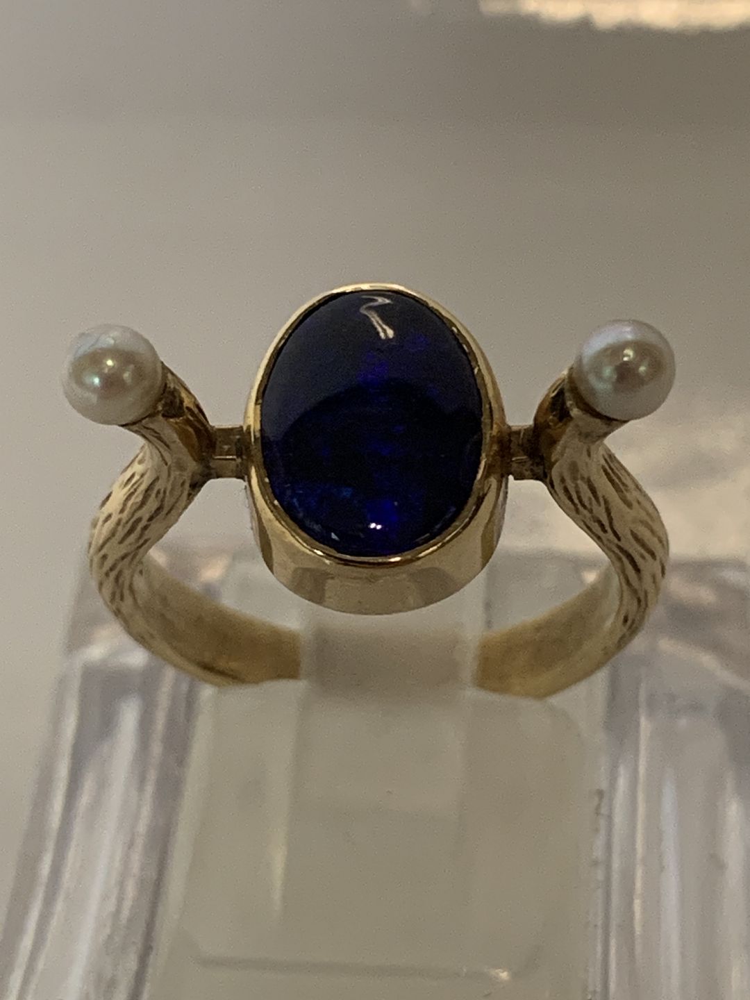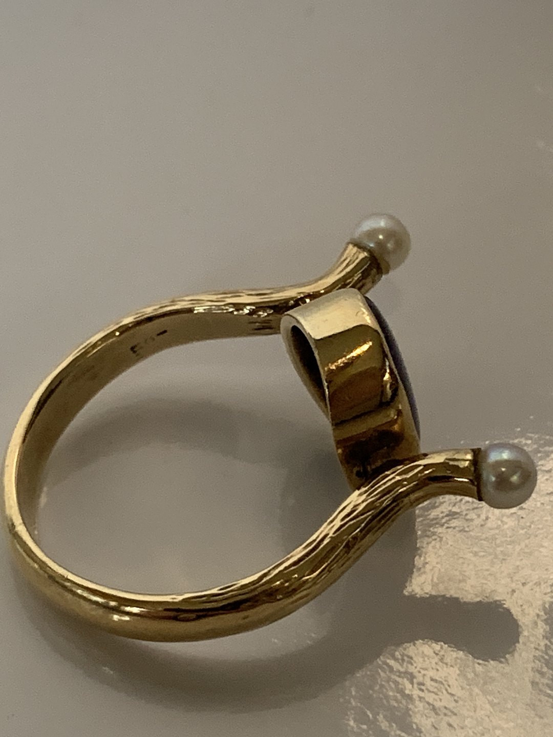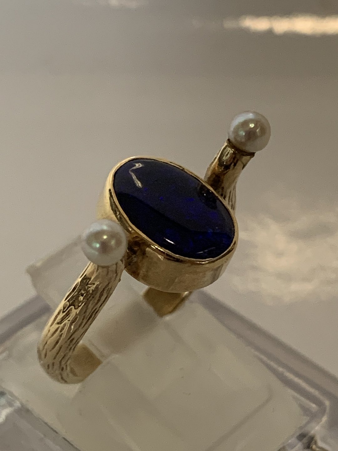 Guldring med Blå sten & Perler,14 Karat