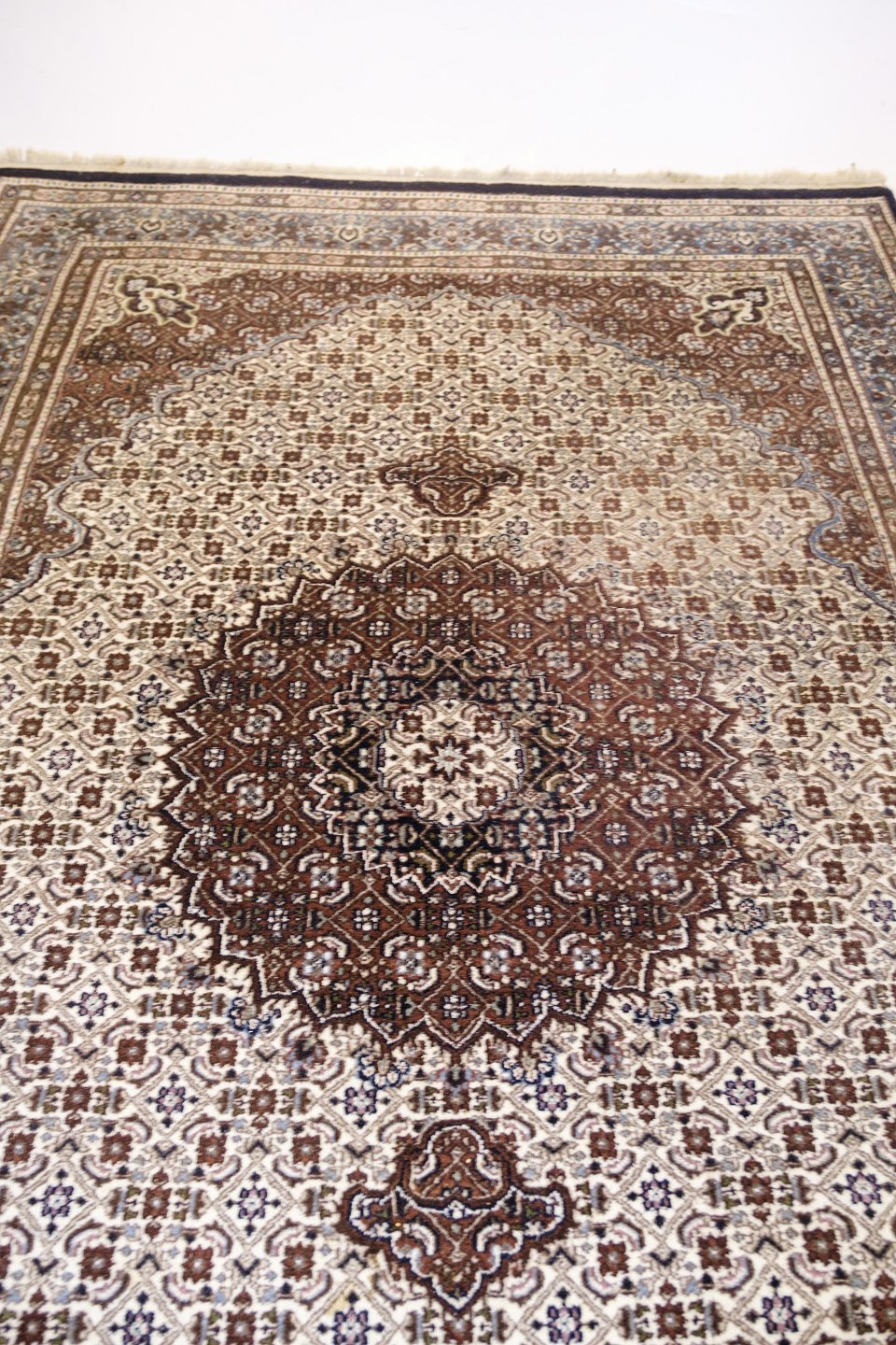 Ægte håndknyttet orientalsk tæppe i brunlige og lyse nuancer. Klassisk mønster, 300x200 cm. Smukt og tidløst orientalsk design.