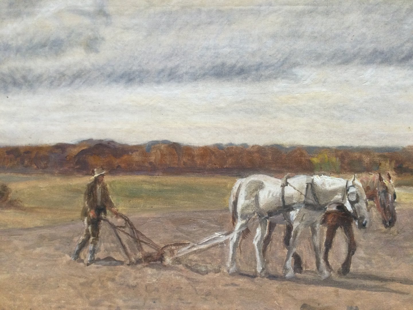 Maleri af Søren Christiansen - Bonde pløjer marken
