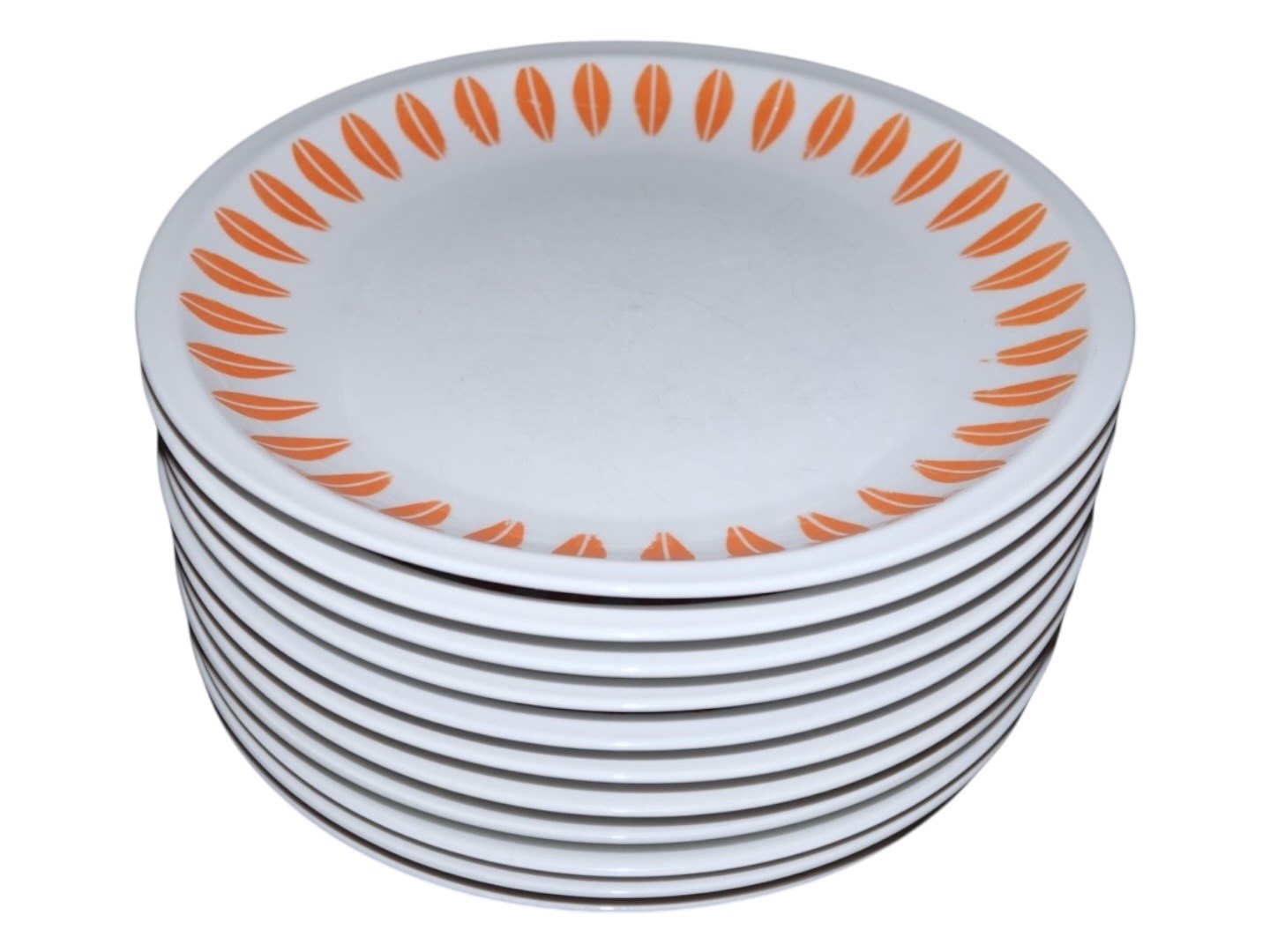Lyngby Lotus, middagstallerken med orange dekoration.