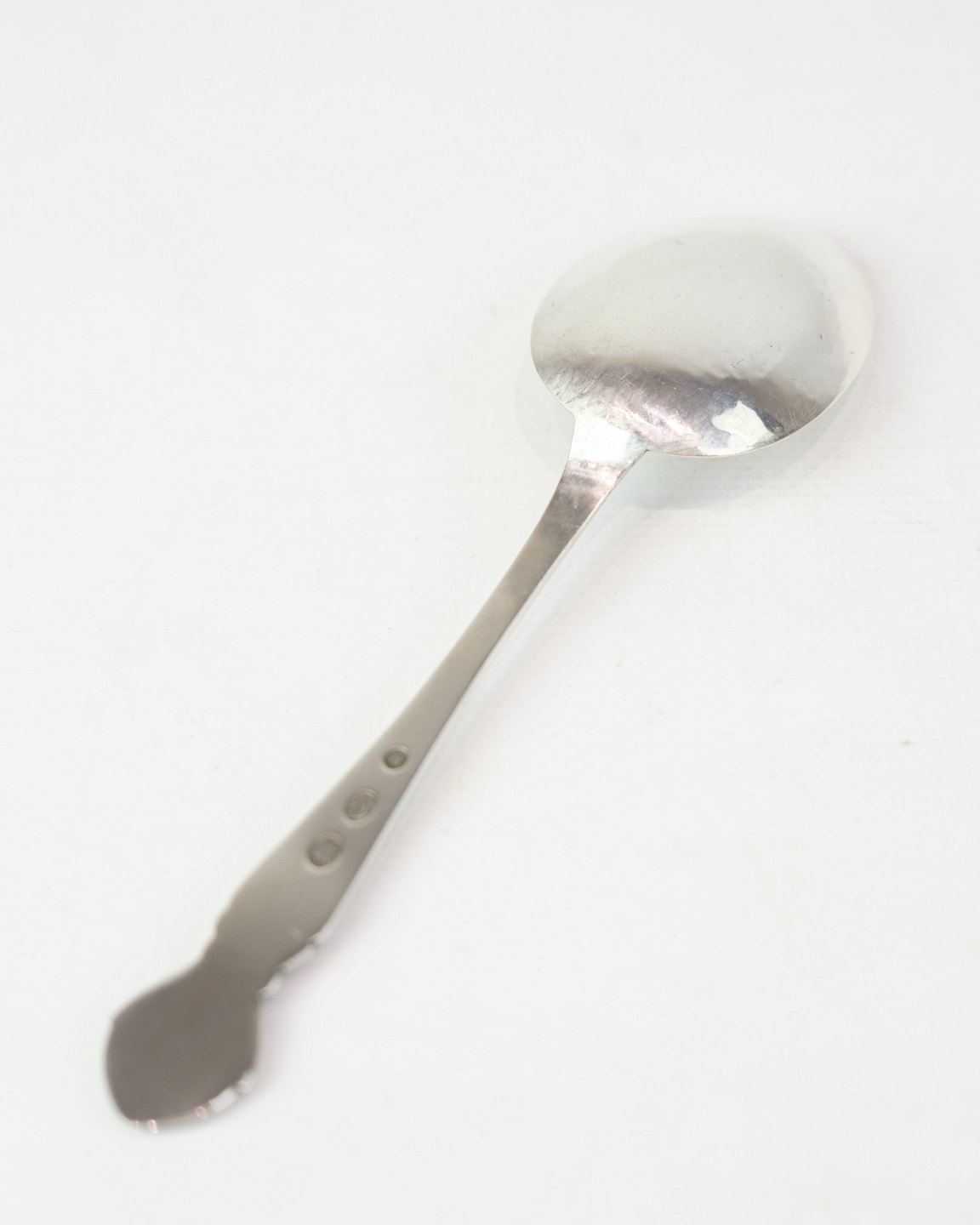 Dessert spoon from A.C. Illum, Copenhagen. Three-tower silver, hallmarked 825, circa mid-1900s. Length 16 cm. Illum was known for its high quality.
