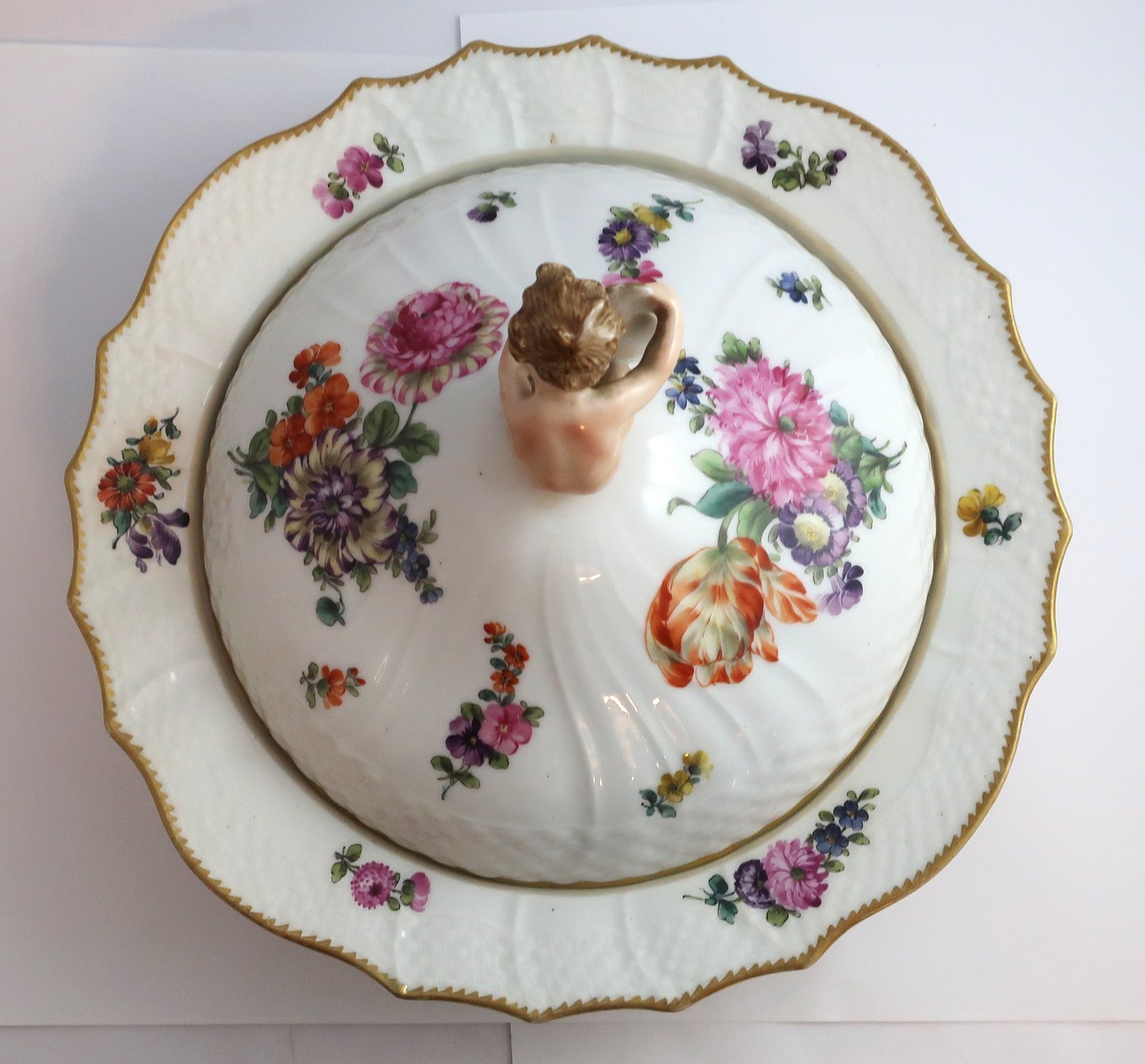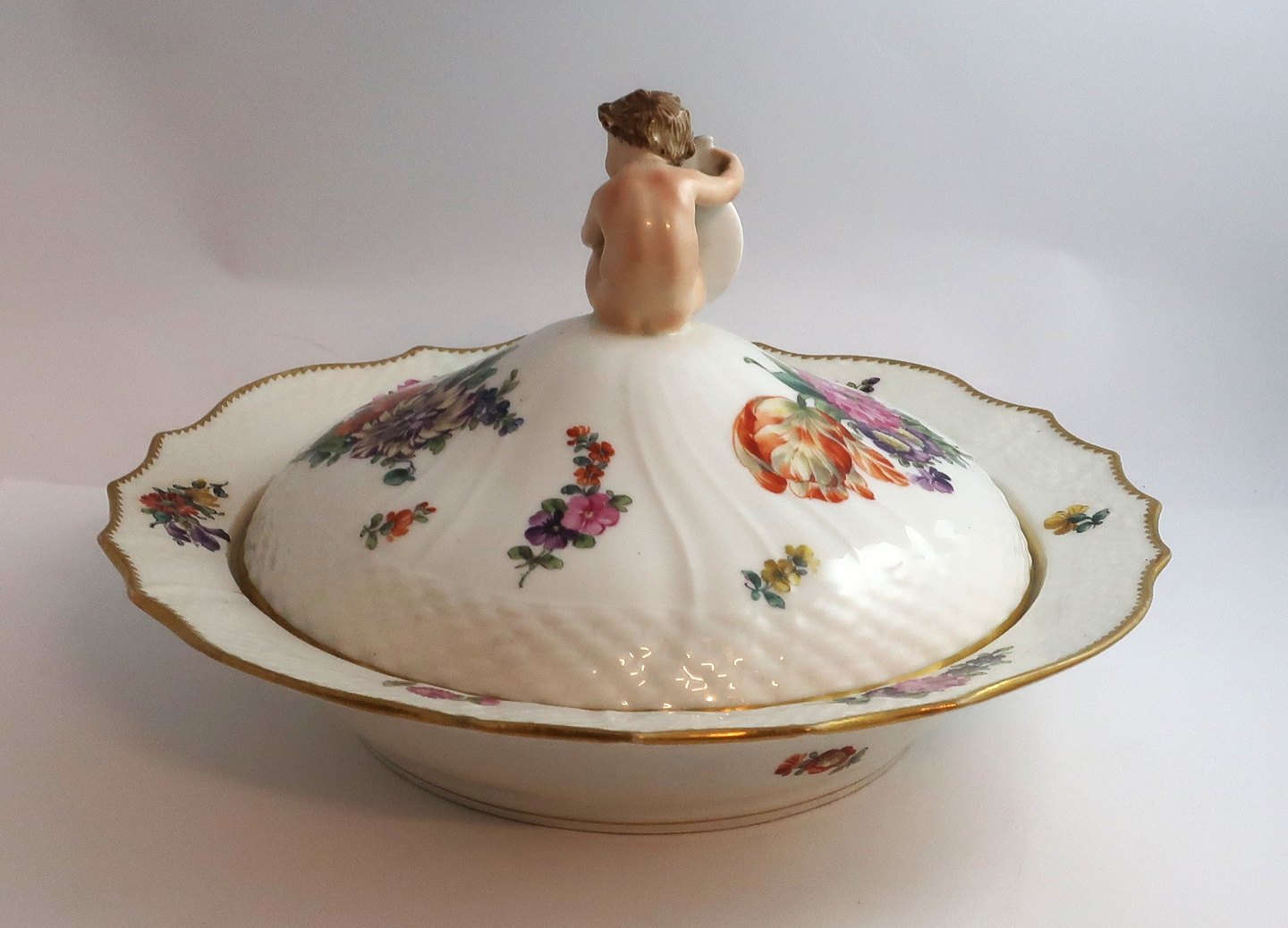 Royal Copenhagen. Saksisk blomst. Rundt lågfad. Højde 17 cm. Diameter 28 cm. Produceret før 1890. (1 sortering)