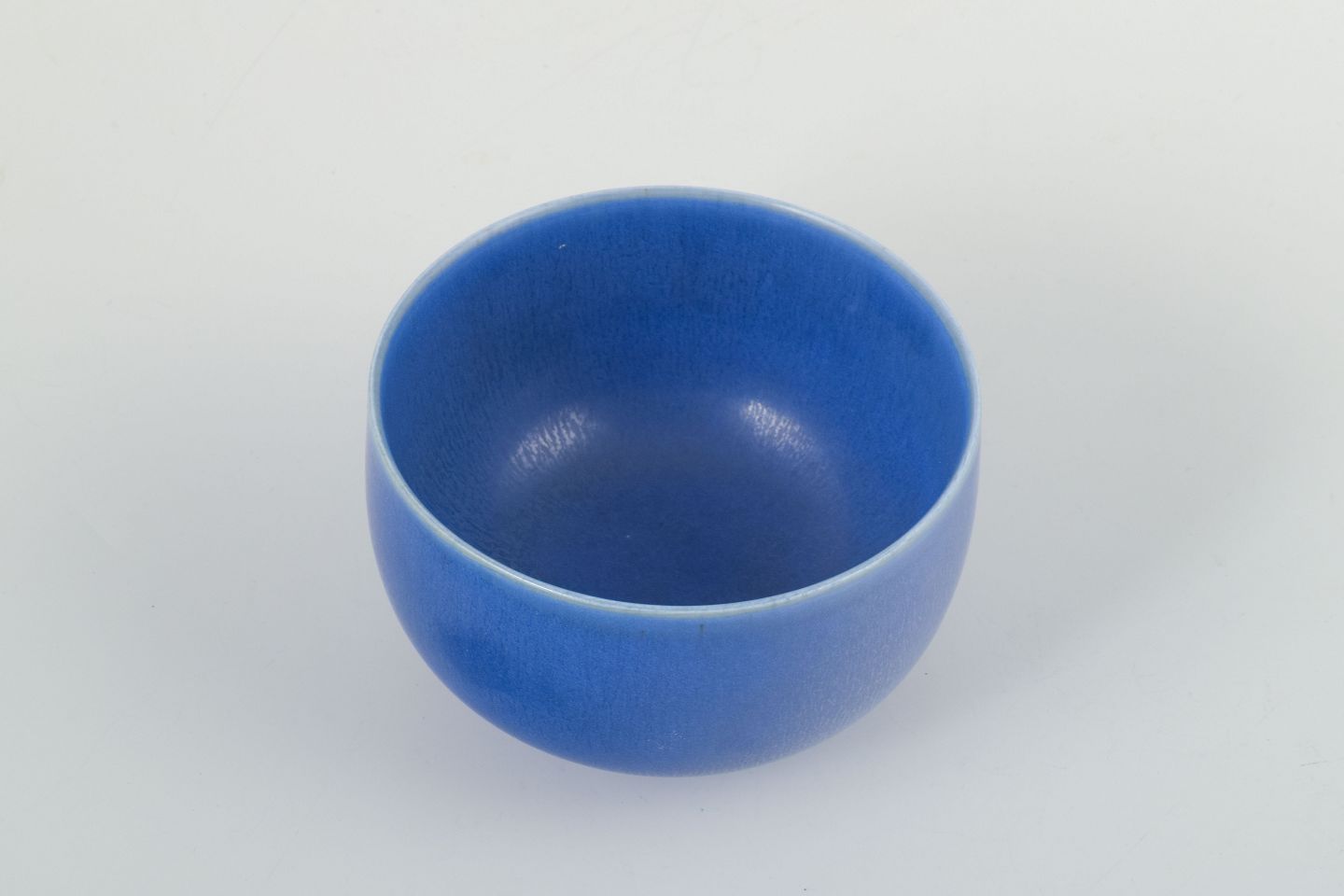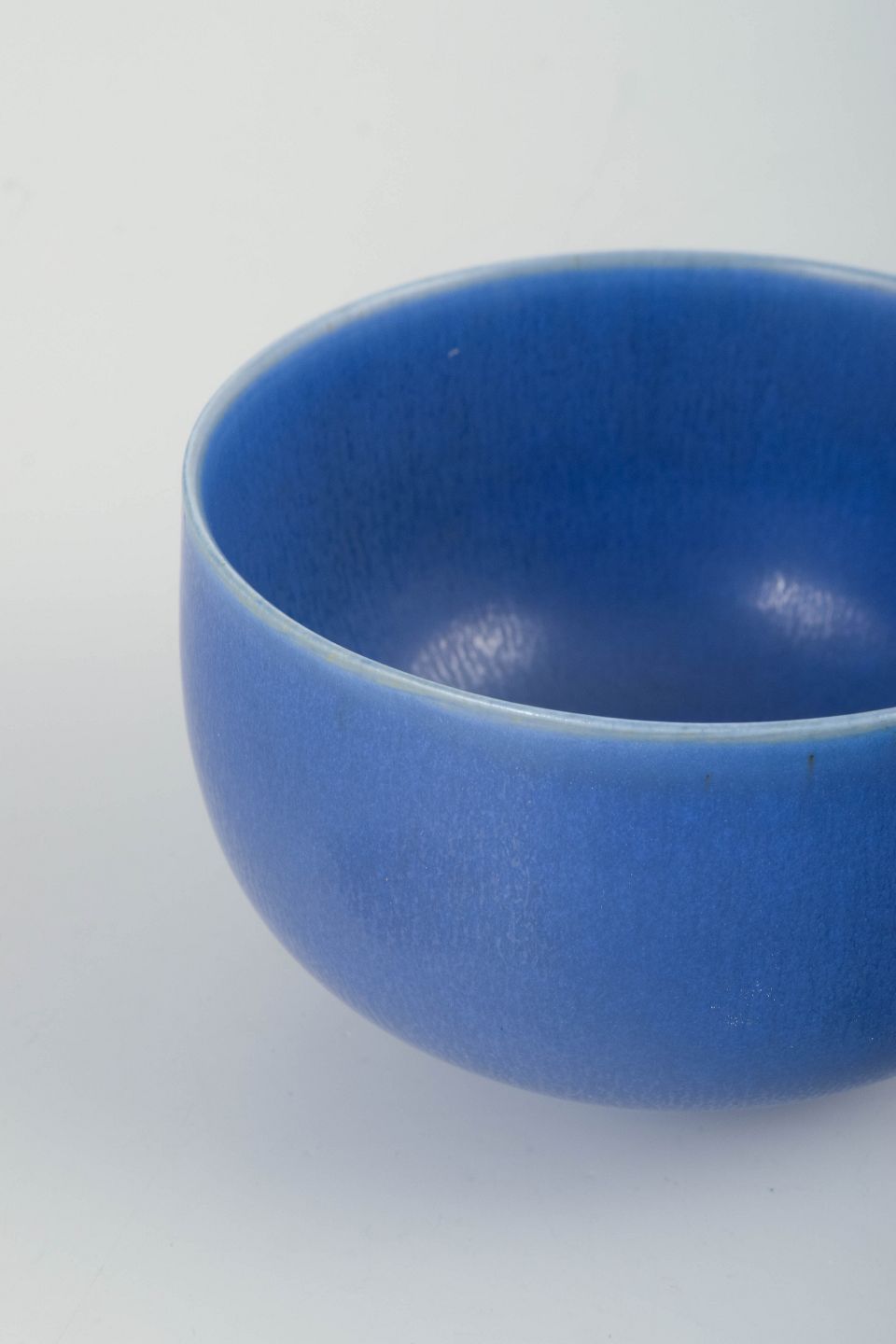 Stoneware bowl with a deep matte blue glaze, shaped in a simple and harmonious rounded form. Signed on the underside: Palshus Denmark, PLS 1166.