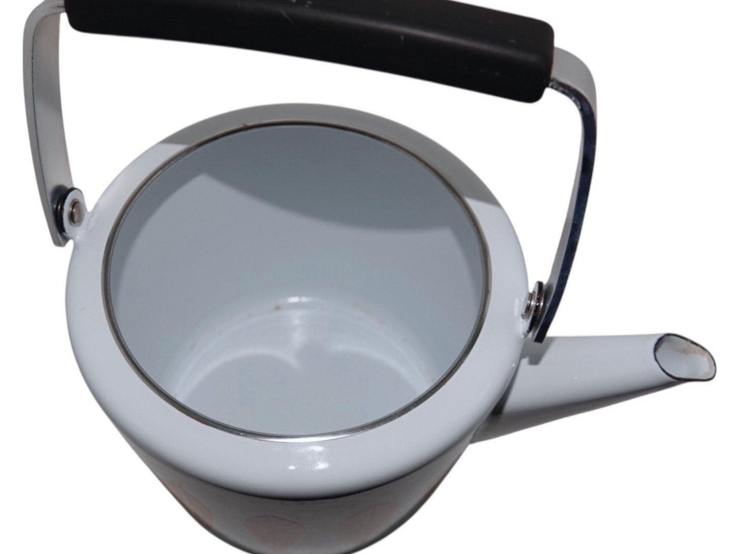 There is one chip in the enamel on the side below the sprout and a little signs of wear on the inside otherwise excellent condition.