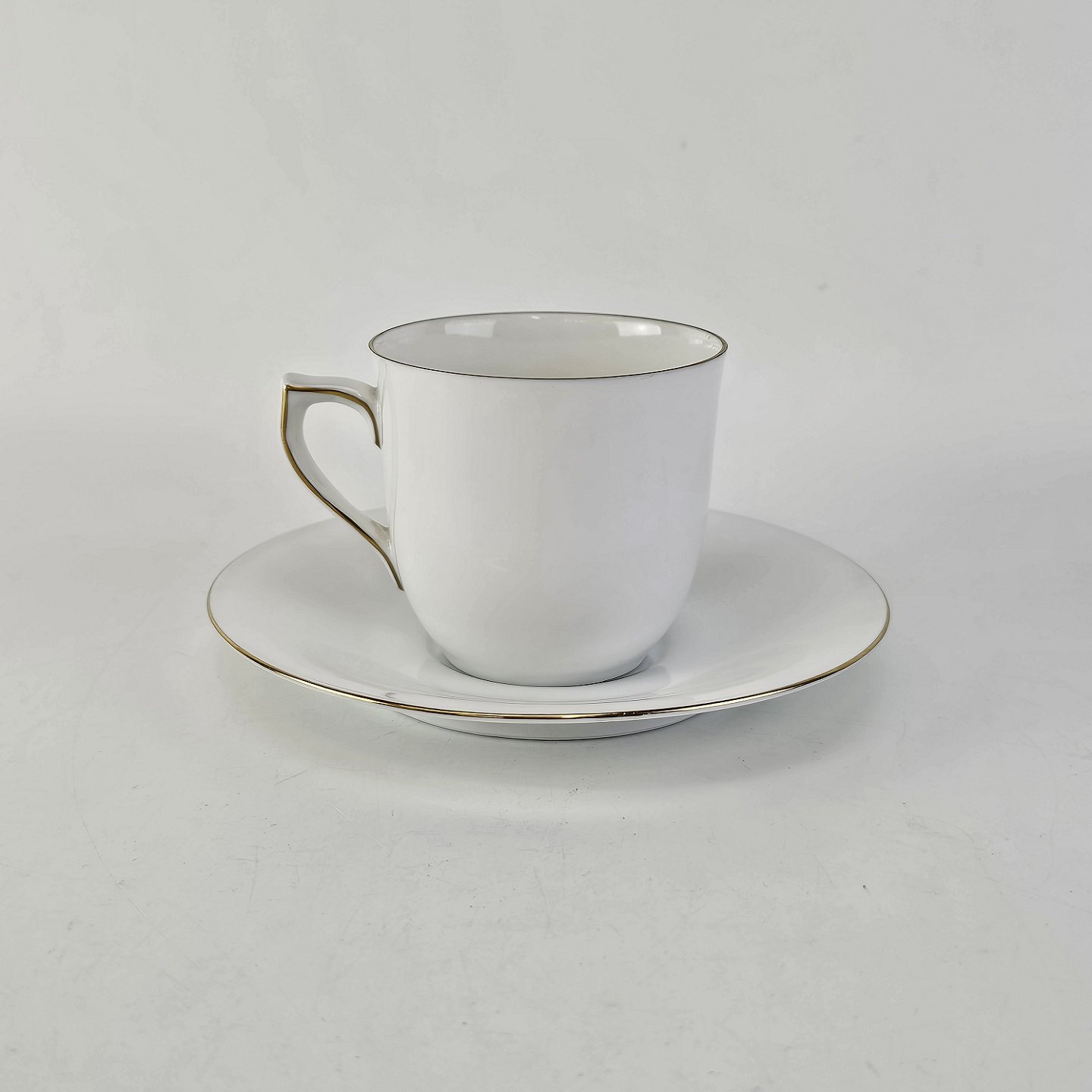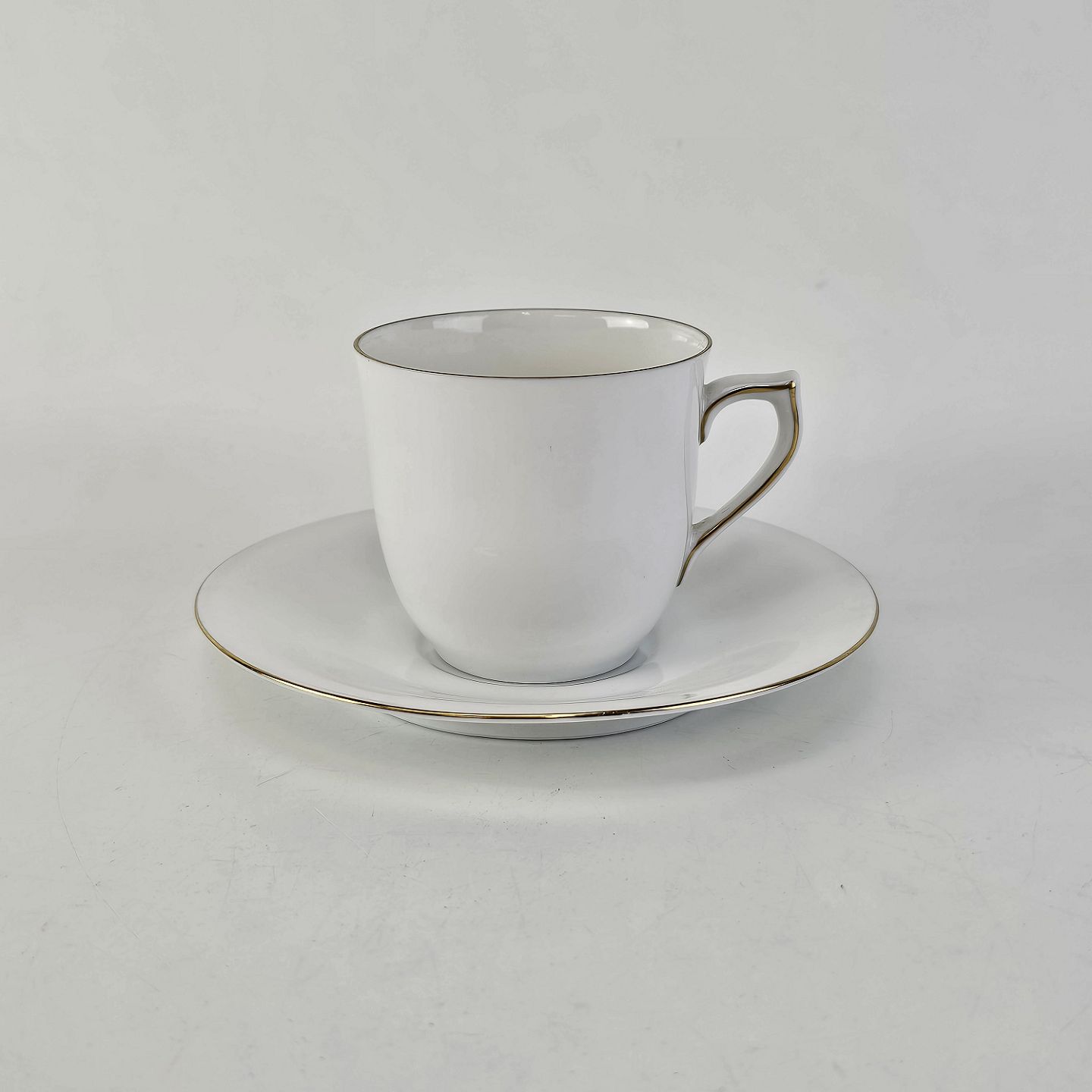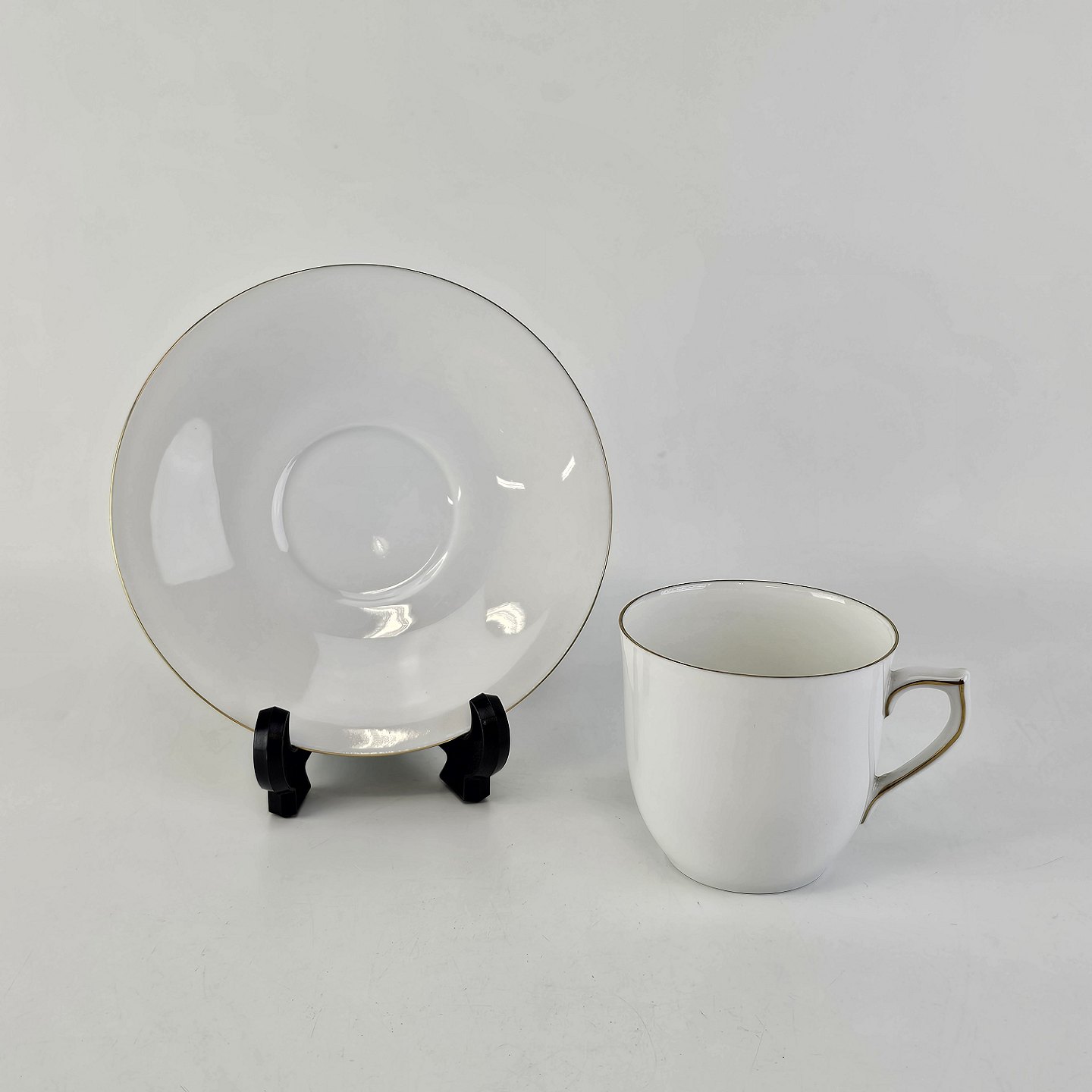 Stel i hvidt porcelæn med guldkant, form 676
