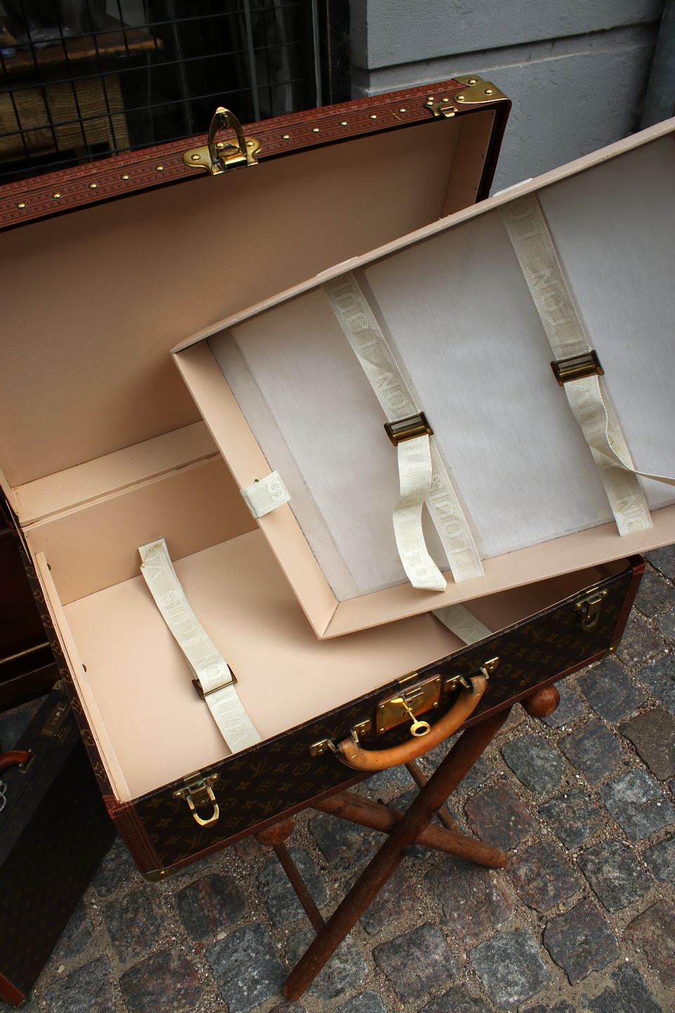 Kufferten har nogle brugsspor med er ellers i en rigtig fin stand og meget velholdt indeni. H:22,5cm. B:62cm. D:45cm.
