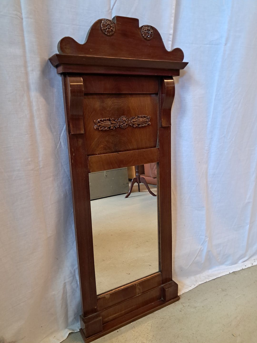 Spejl i fineret mahogni, fra 1900erne.